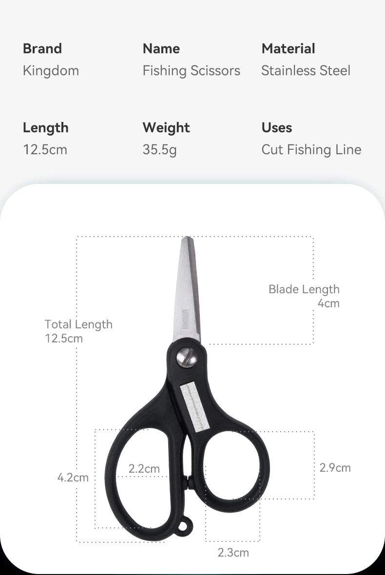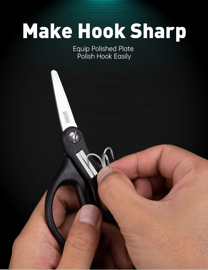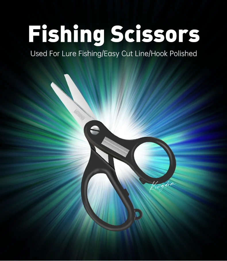 Kingdom Tijeras de pesca portátiles Accesorios de pesca de acero inoxidable pulido Ganchos para señuelos Corte rápido PE Línea trenzada Herramientas de aparejos de pesca
