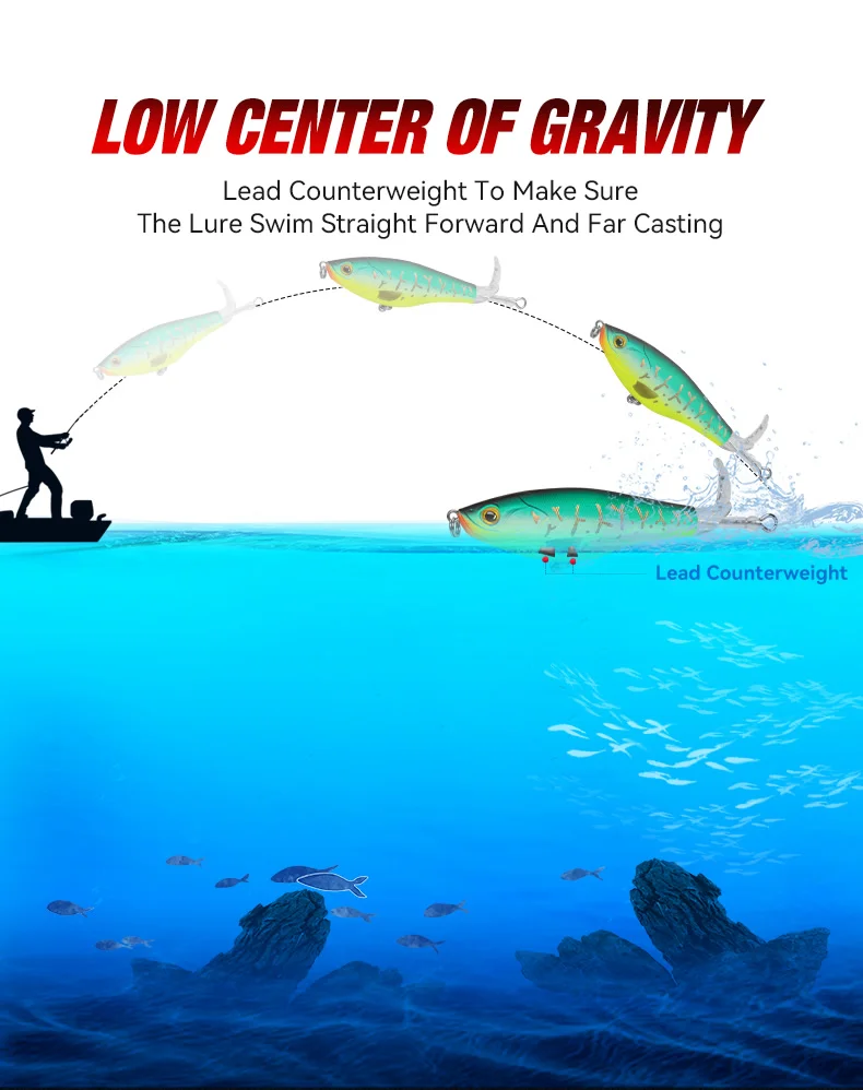 Kingdom Topwater señuelo de pesca 90mm110mm Whopper Popper cebos artificiales duros Plopper cola giratoria suave Swimbaits aparejos de pesca
