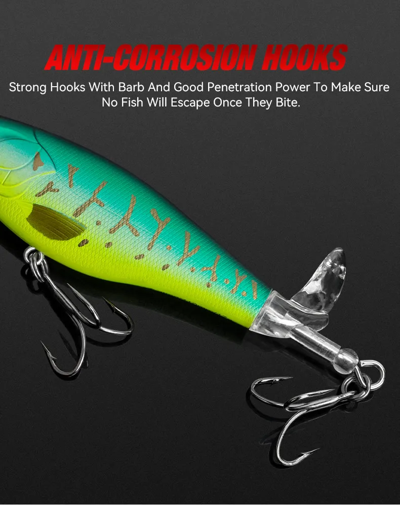 Buena calidad y excelente rendimiento. Los anzuelos son resistentes y afilados. A diferencia de los señuelos de otros fabricantes, este no provoca enredos en la línea.