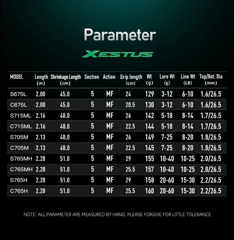 -La gama completa de este modelo cubre L-ML-M-MH-H desde micro hasta peces objetivo grandes.