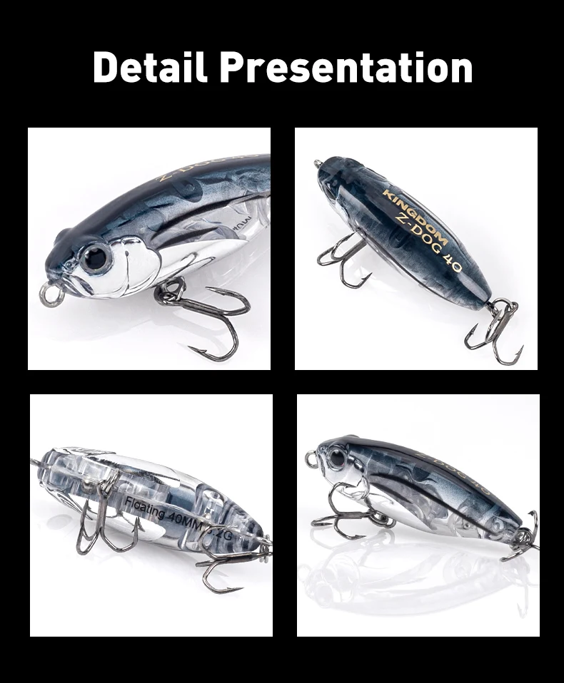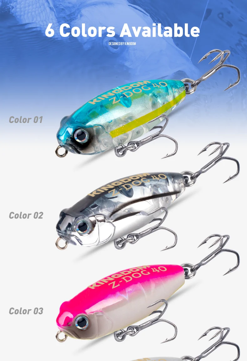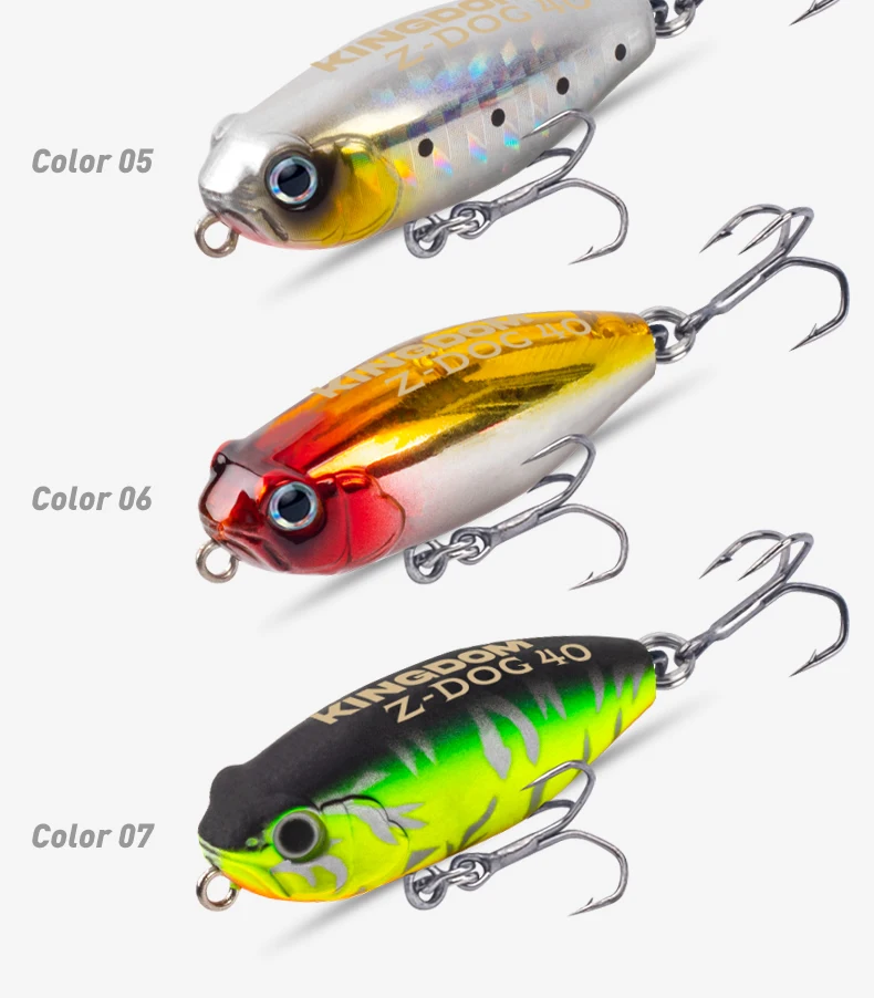 Kingdom Z-Dog-señuelos de pesca con lápiz flotante, 40mm, 3.2g, Stickbait Topwater, superficie para caminar con el perro, cebos duros, Wobblers para lubina y Lucio