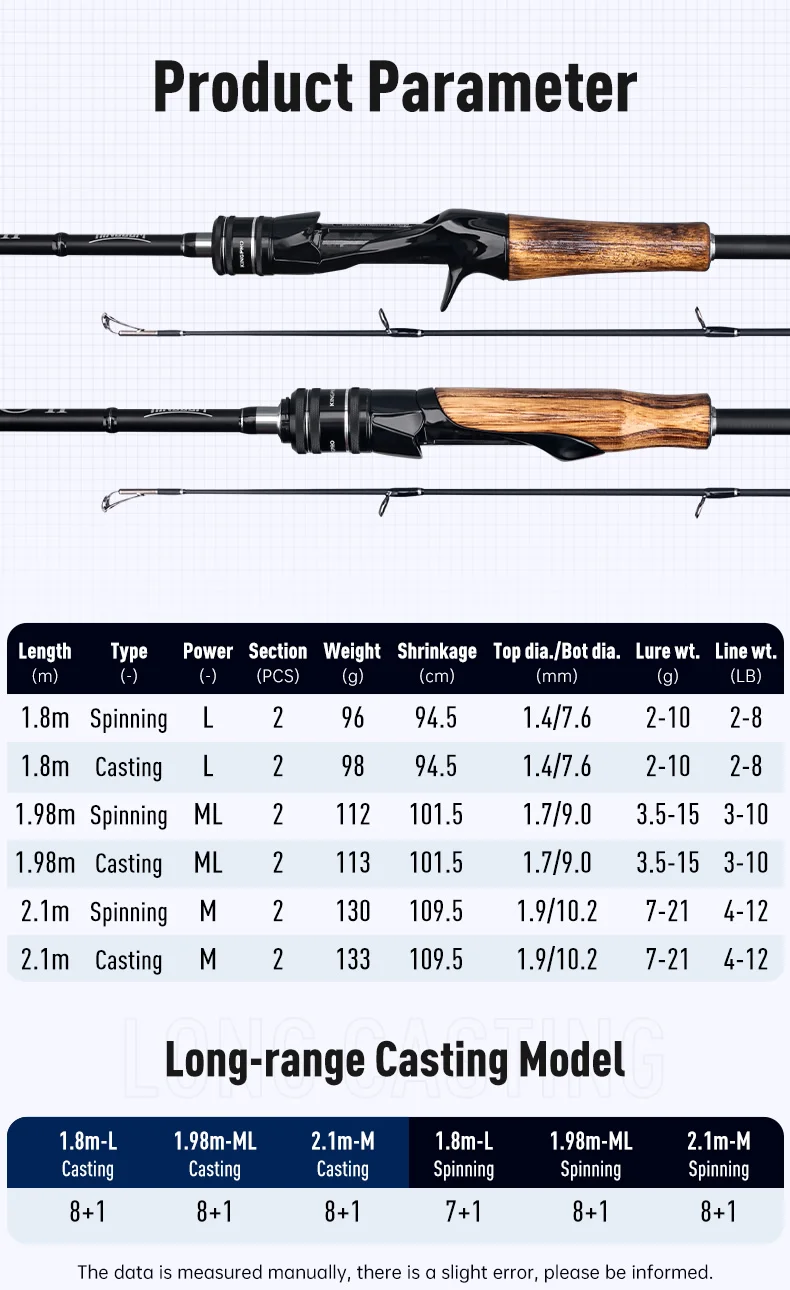 Kingdom-Cañas de pescar Kingpro serie 2, caña de pescar de carbono M ML L Power MF Action 1,8 m 1,98 M 2,1 m Spinning Casting, 2 secciones