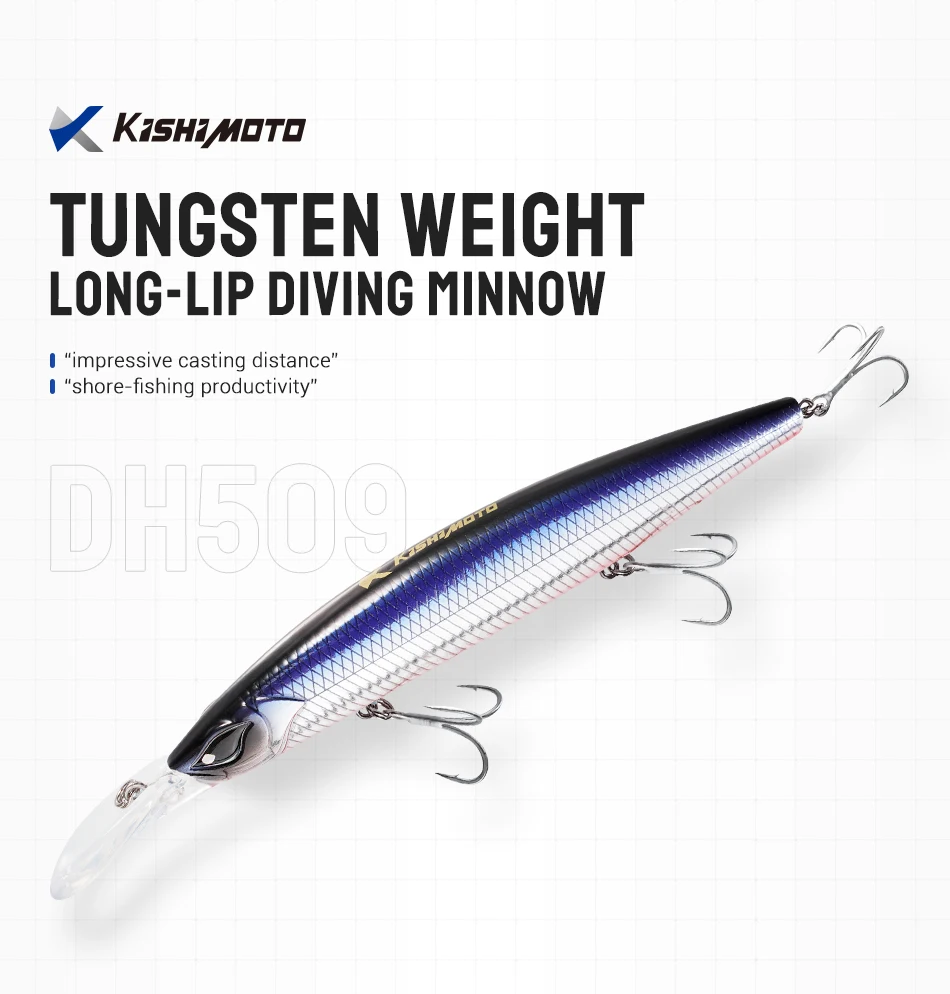 Kishimoto Minnow de buceo 12,5 cm 26 g Señuelo de pesca hundido Peso de tungsteno Wobbler Jerkbait Shore Señuelos de pesca de Minnow de fundición larga
