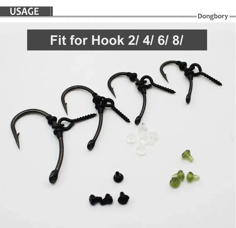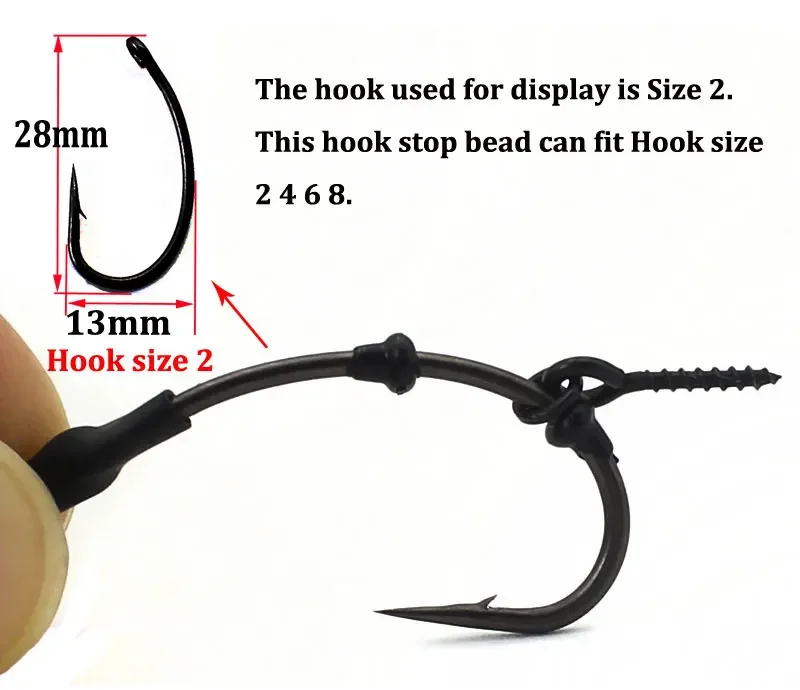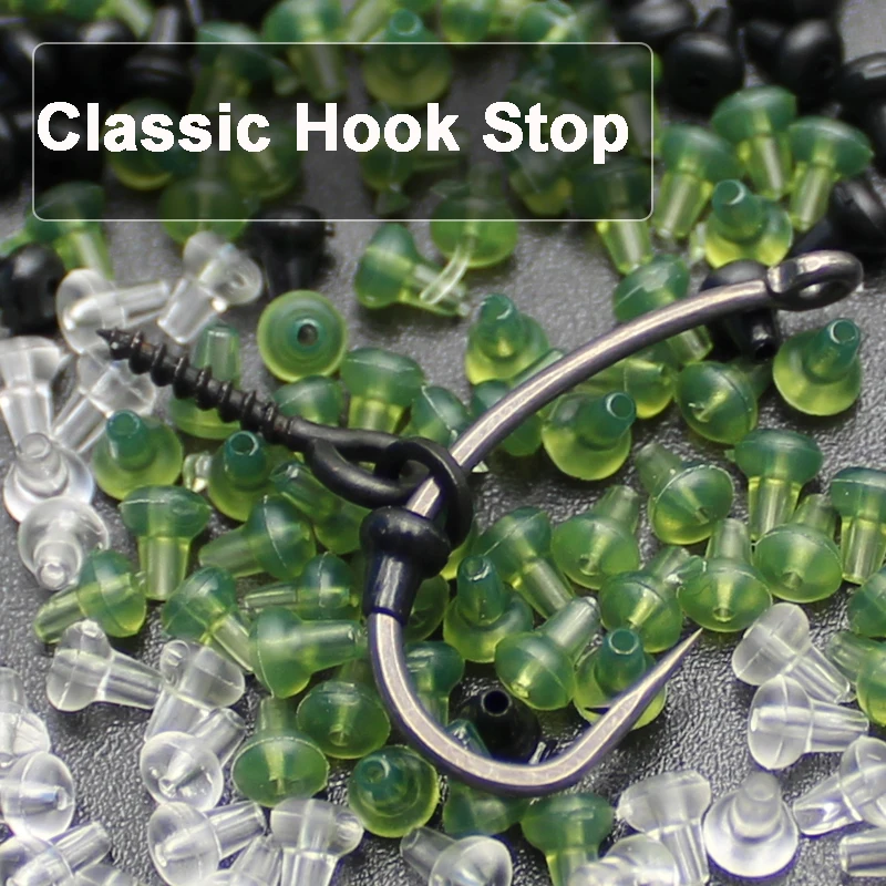 Los topes de anzuelo se utilizan para mantener los microgirillos, los anillos de aparejo y los tornillos de cebo en los ganchos.Hechos de caucho duradero, los ganchos tienen un pequeño orificio en el medio que se desliza sobre los ganchos.Mojar el anzuelo antes de usarlo ayuda a que el anzuelo se deslice más fácilmente.