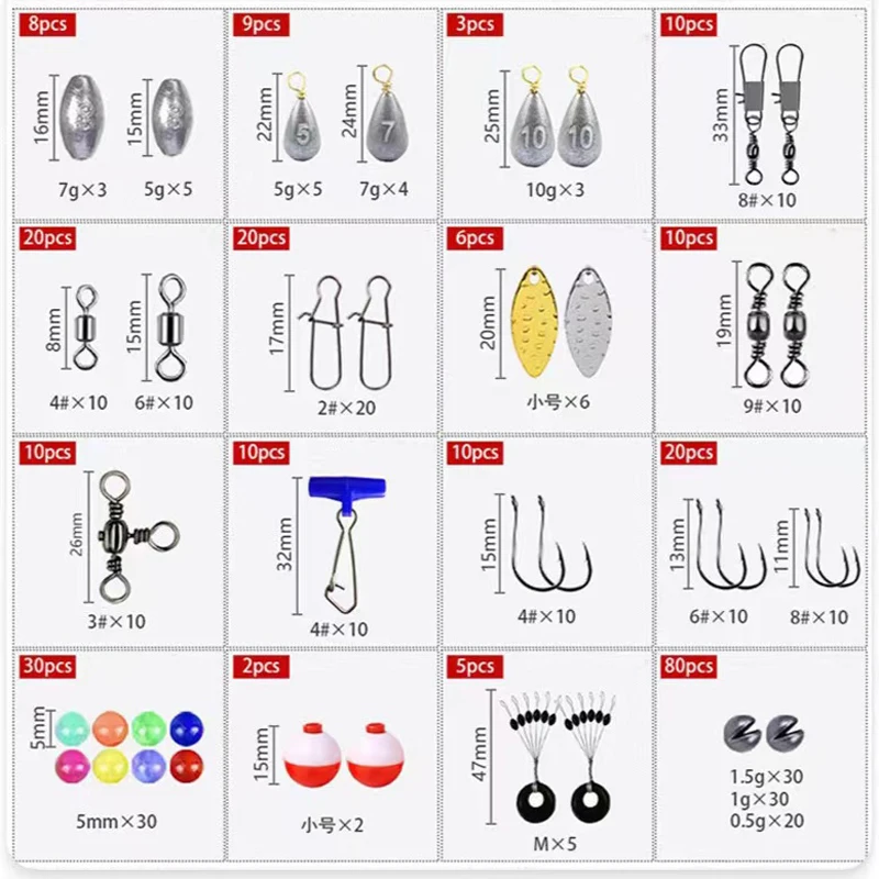 2. Varios aparejos de pesca: la grasa de pesca de 254 piezas ofrece muchas opciones de tipo de pez para pescadores principiantes o expertos.Recoge casi todos los accesorios, incluidos anzuelos de pesca, cuentas de pesca, broches de pesca, flotadores de pesca, controles deslizantes de pesca, plomos de huevos, disparos redondos divididos, hojas giratorias y topes de bobber.