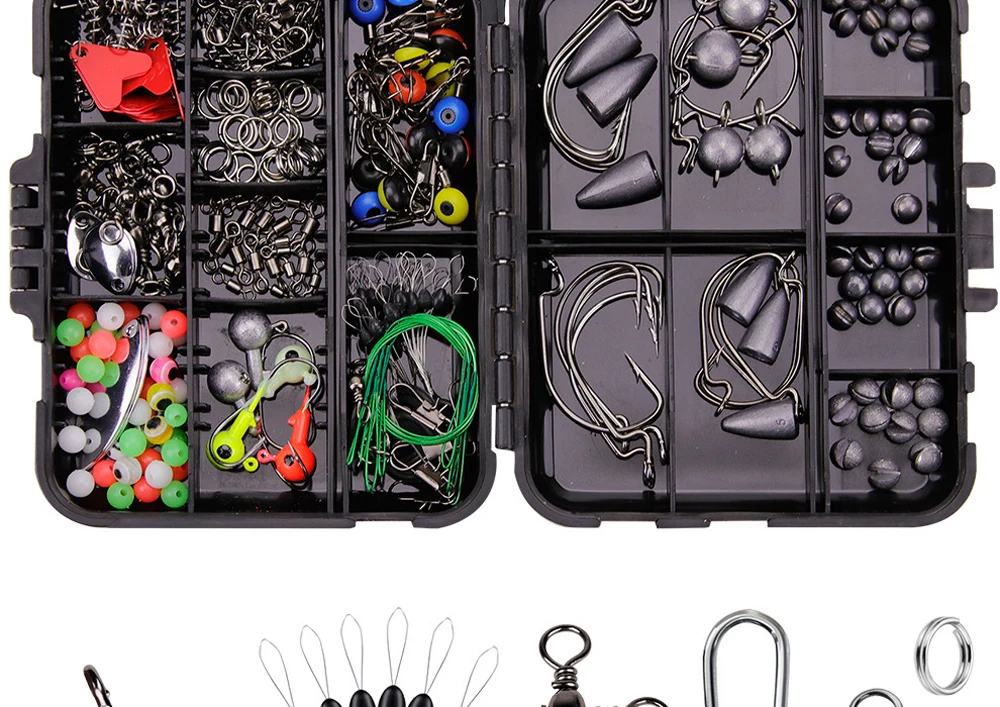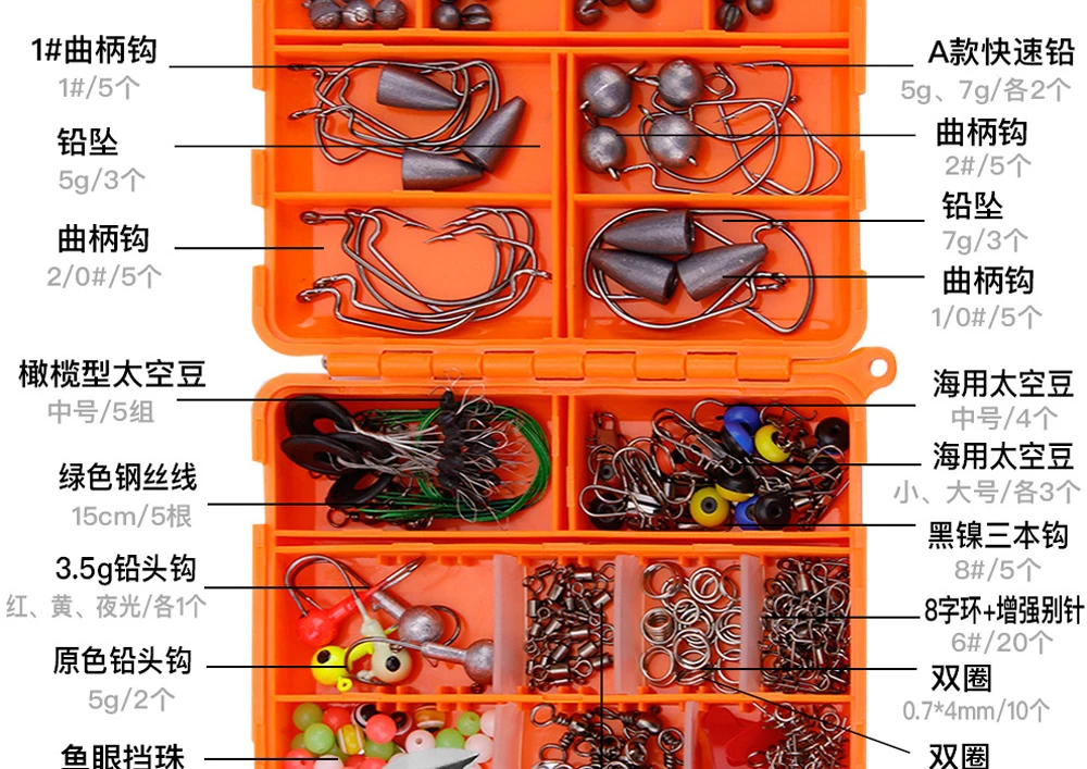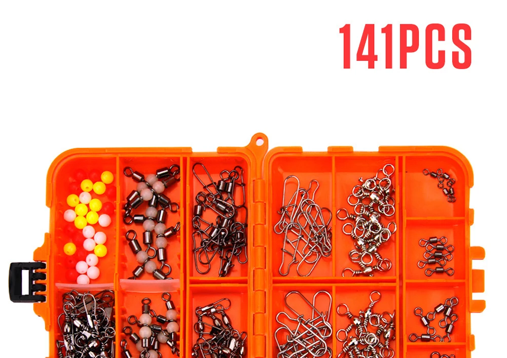Kit de accesorios portátiles para pesca en roca, juego de aparejos, ganchos de mar, plomos giratorios para agua dulce y salada con caja, 165/141/257 piezas
