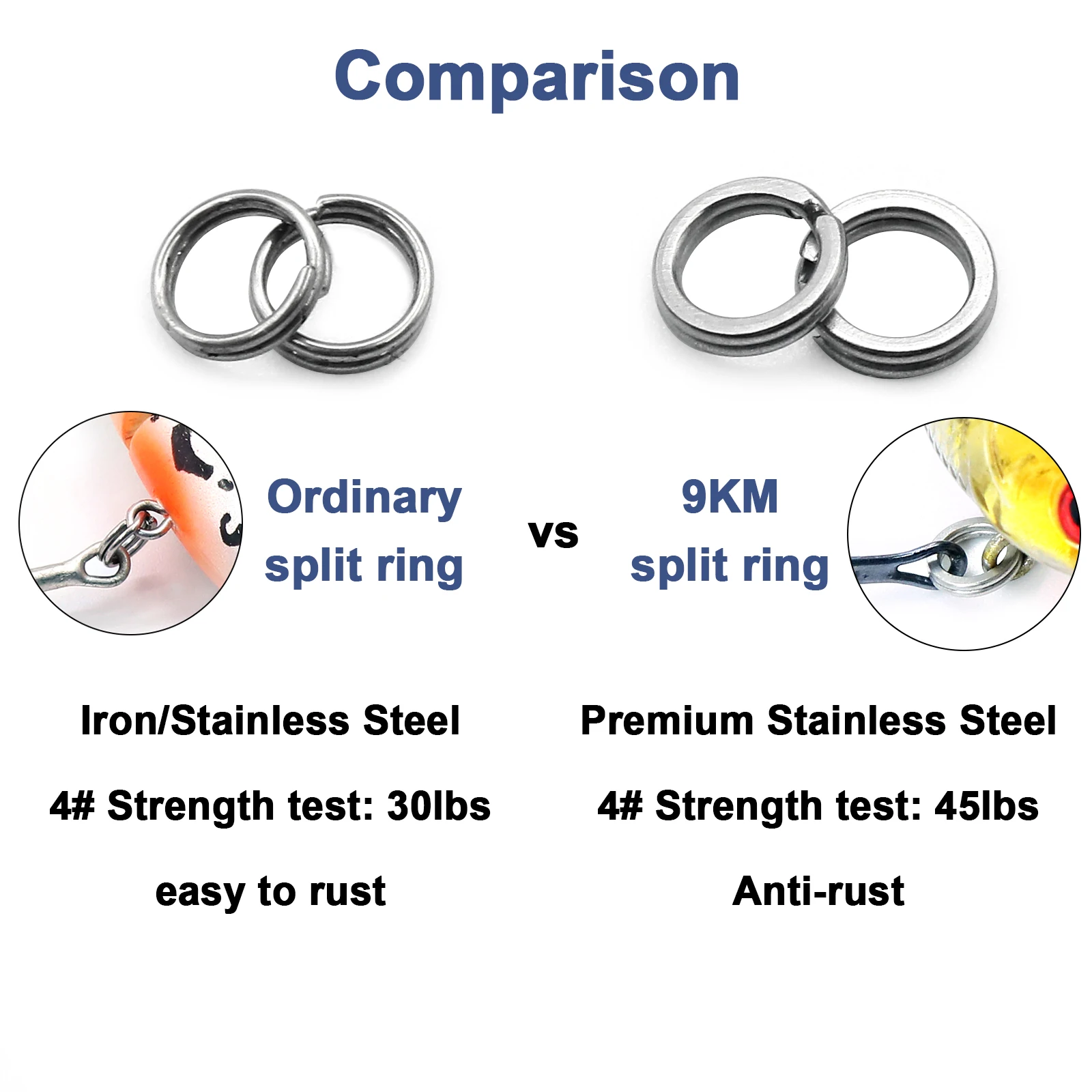 El material de alta calidad y el proceso de aplanamiento de alta resistencia de la máquina aumentan en gran medida la resistencia del anillo. Reducir el riesgo de que los peces se separen. Incluso después de abrirlos para colocar ganchos más grandes, estos anillos divididos permanecerán cerrados sin conservar memoria.