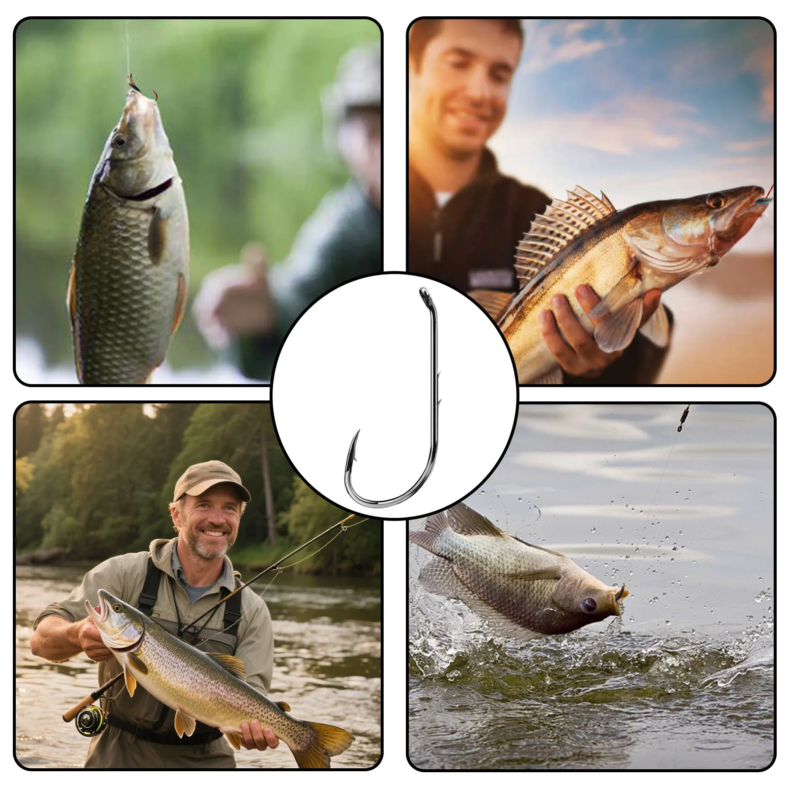 Sujeción segura del cebo: el vástago de doble púas mantiene el cebo firmemente en su lugar, asegurando que permanezca puesto durante golpes agresivos, una característica crítica para los pescadores que usan cebo vivo.Material duradero: la construcción de acero con alto contenido de carbono ofrece resistencia y longevidad, adecuada tanto para agua dulce como salada, inferida de los estándares comunes de la industria.