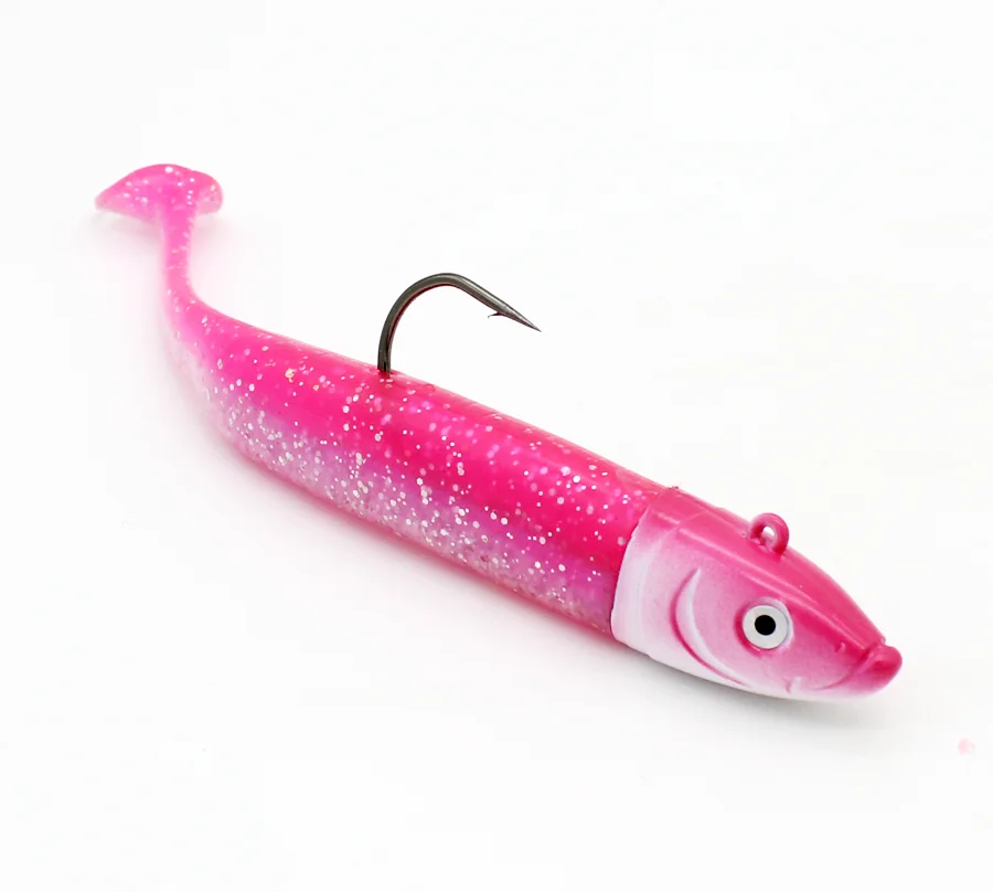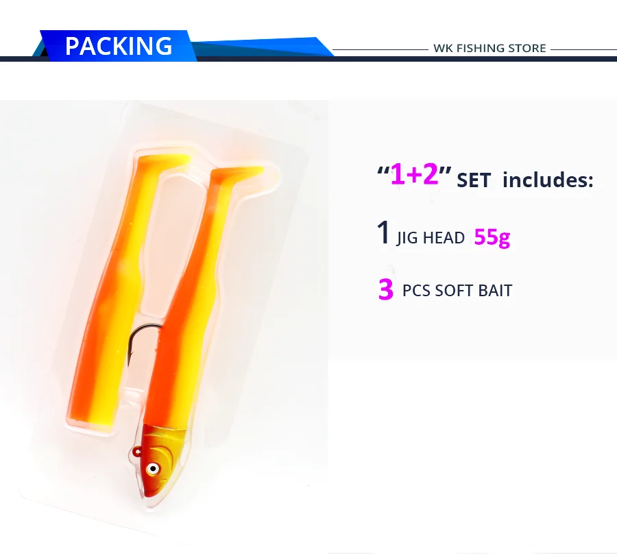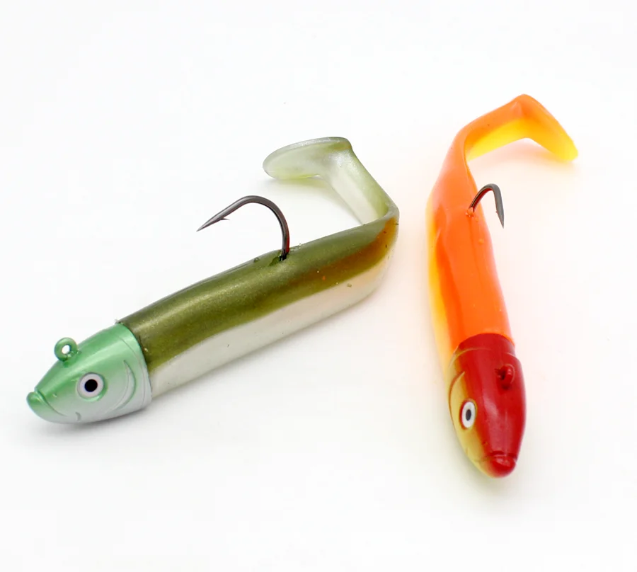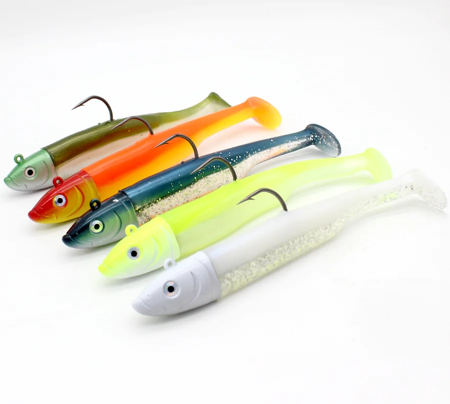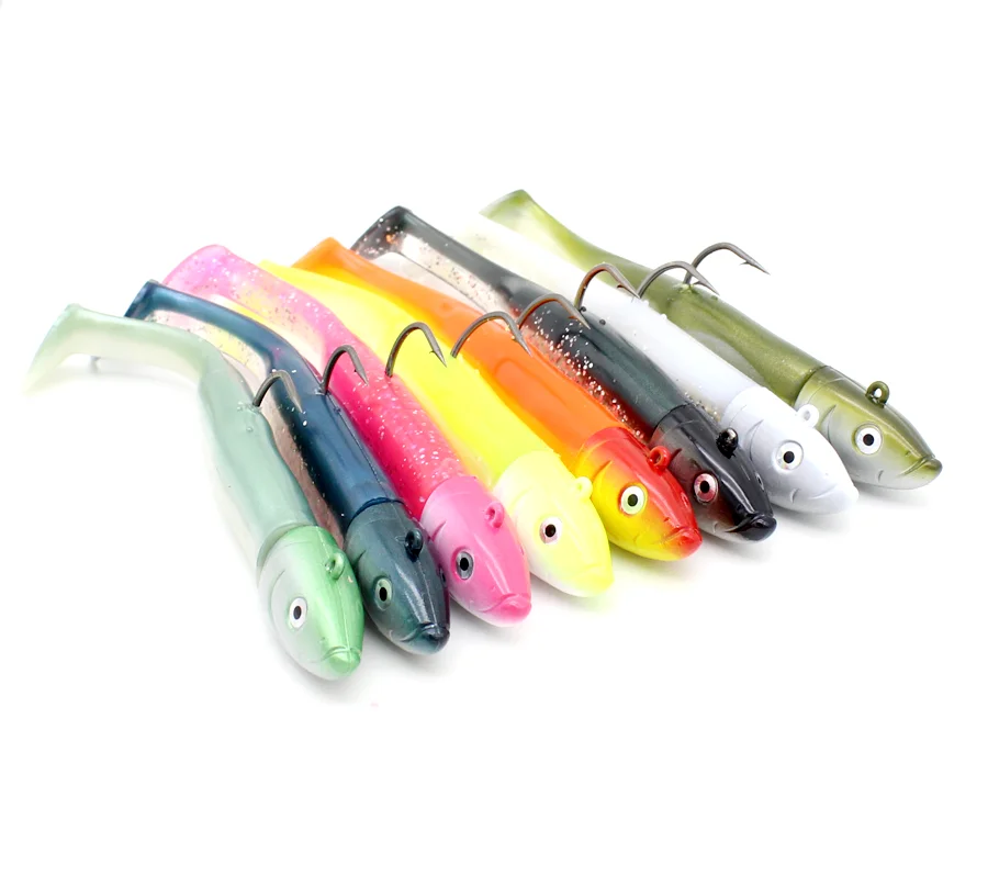 KIT de anzuelos de 15cm con cabeza de plantilla de 55g, señuelo suave de 4,5 pulgadas para pesca en barco, 5/0 anzuelos, atún para Sábalo, Swimbait de aguas profundas