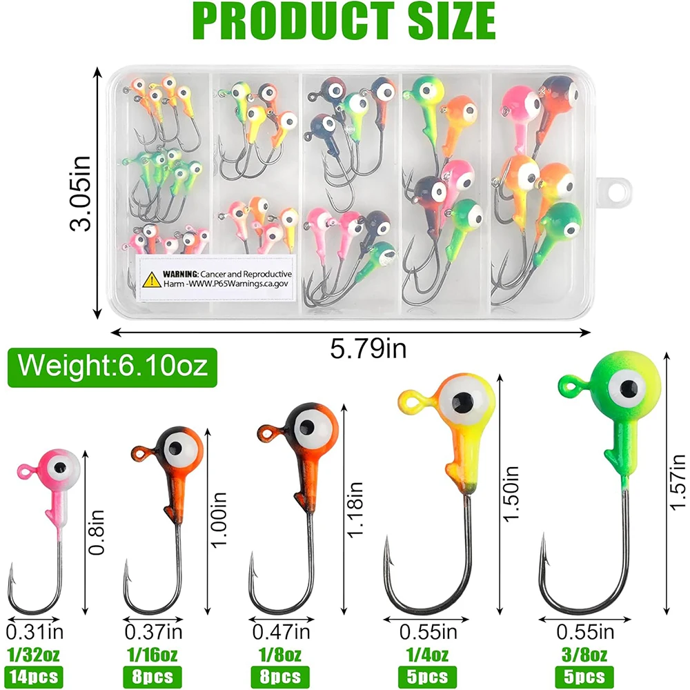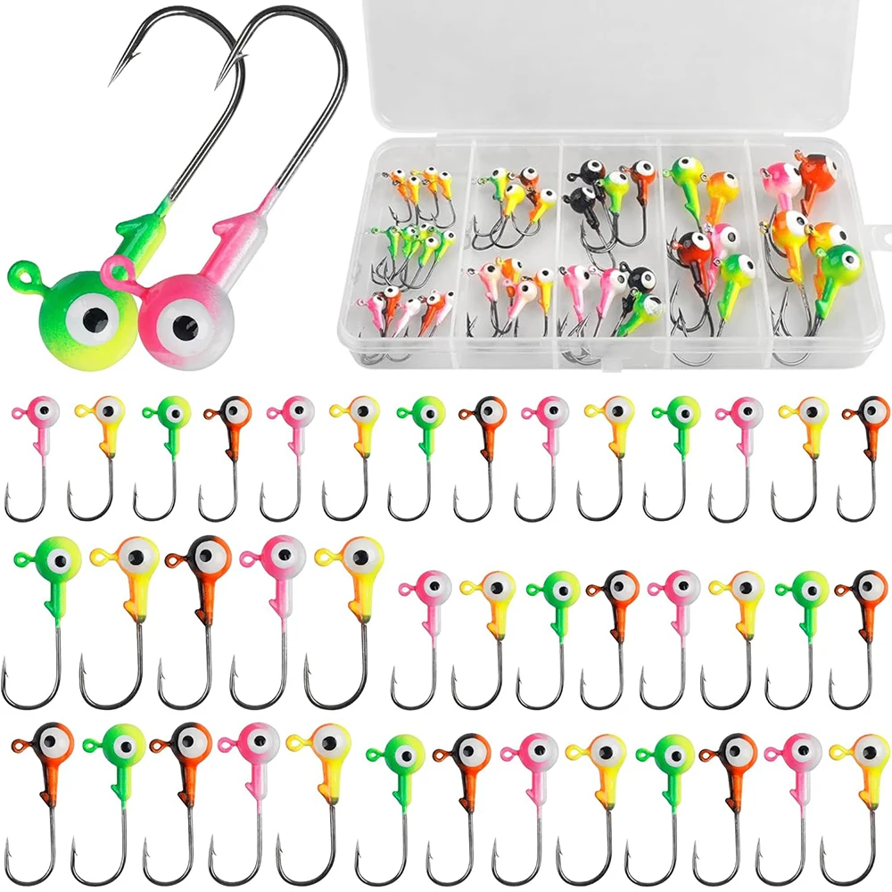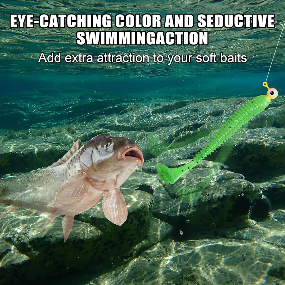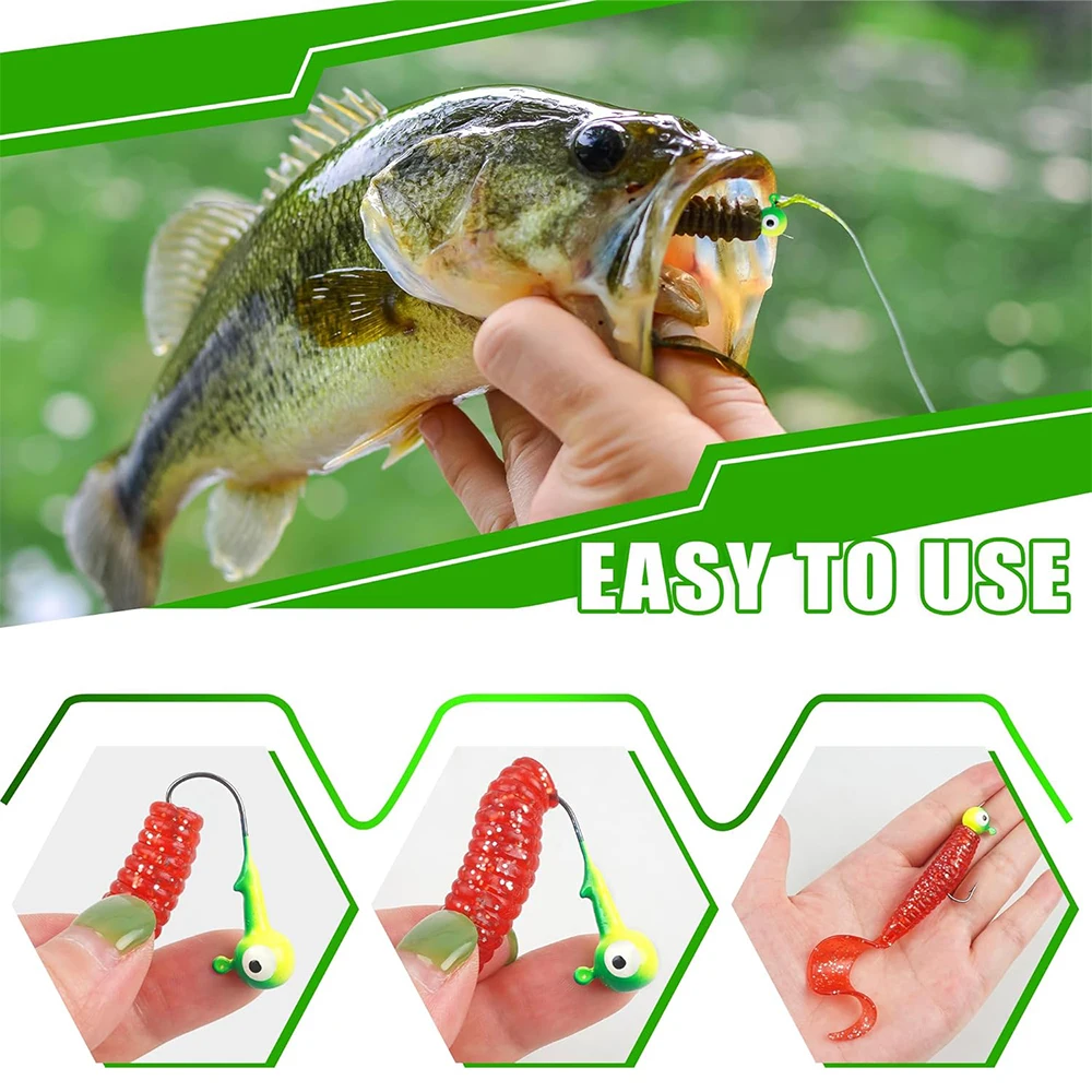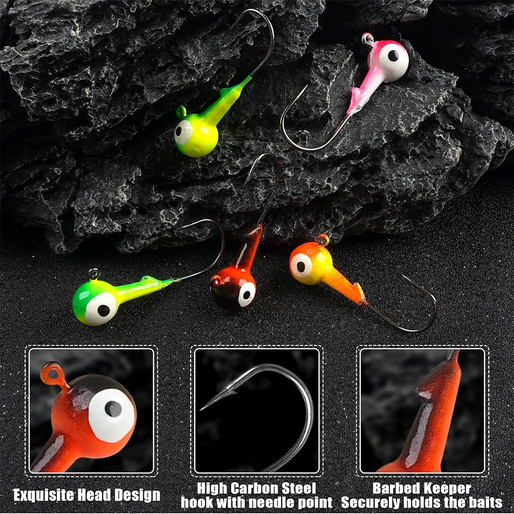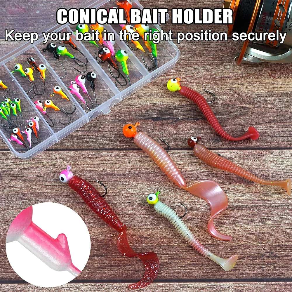 【Diseño de ojales】Cada plantilla de cabeza de bola redonda tiene un ojal transparente para inclinar su hilo de pescar fácilmente y el soporte para cebo evita que los señuelos blandos se resbalen.