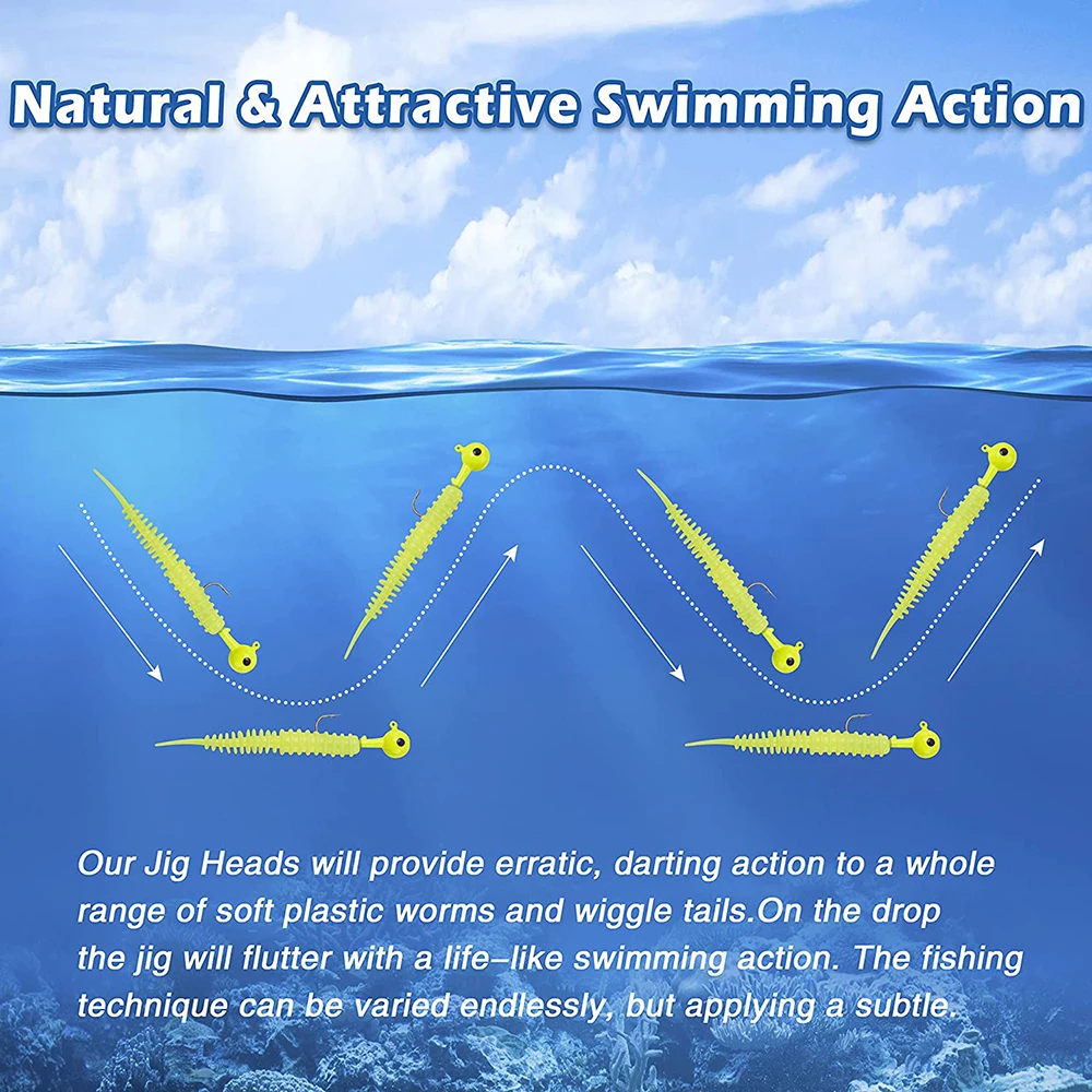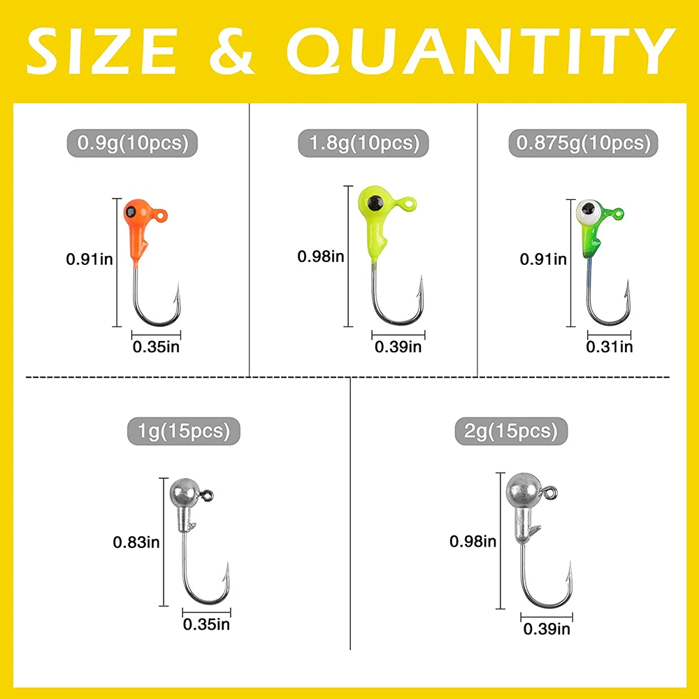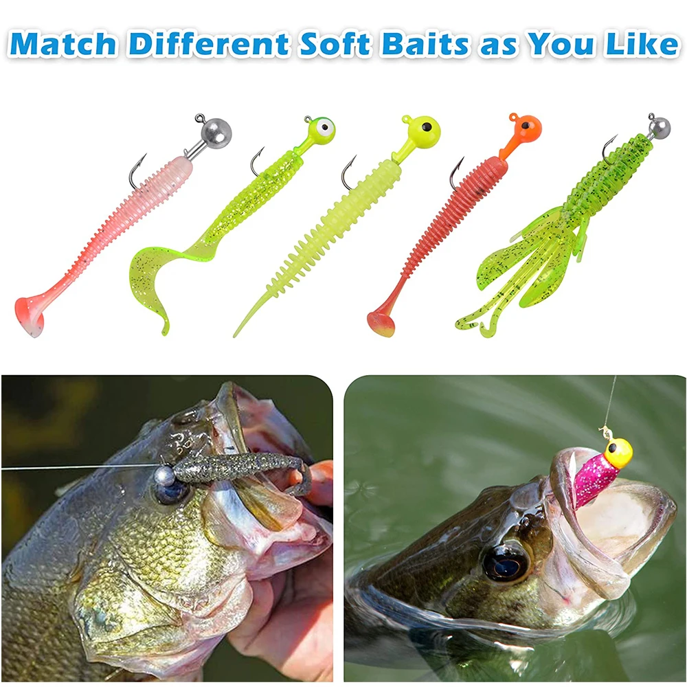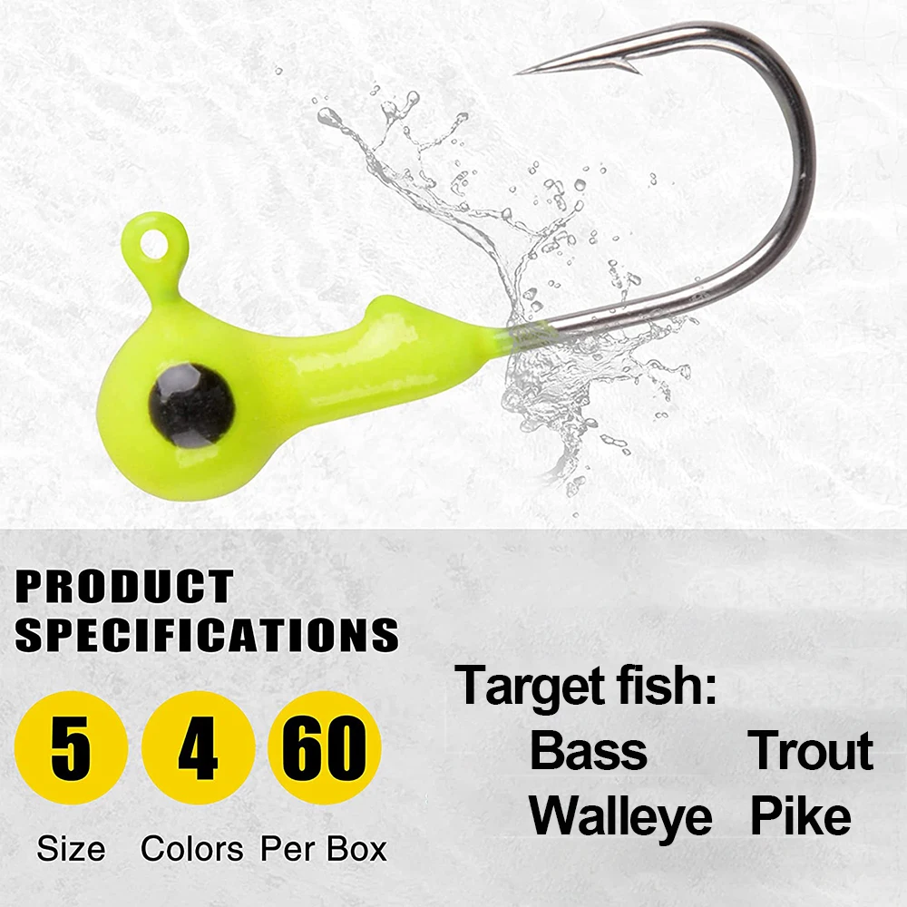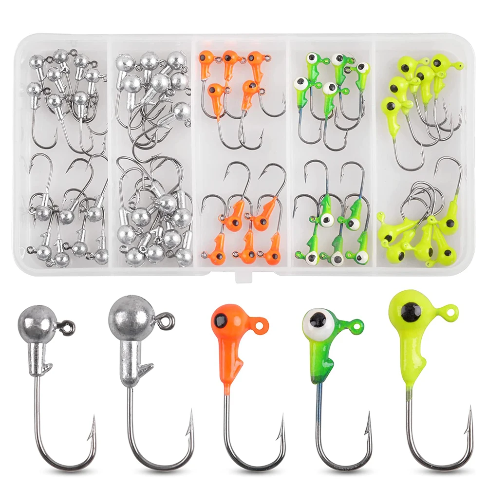 Kit de anzuelos de cabeza de plantilla de bola, surtido de anzuelos de pesca de gusano de cabezas redondas de 60 piezas PARA PEZ pez trucha, lubina, agua dulce y salada