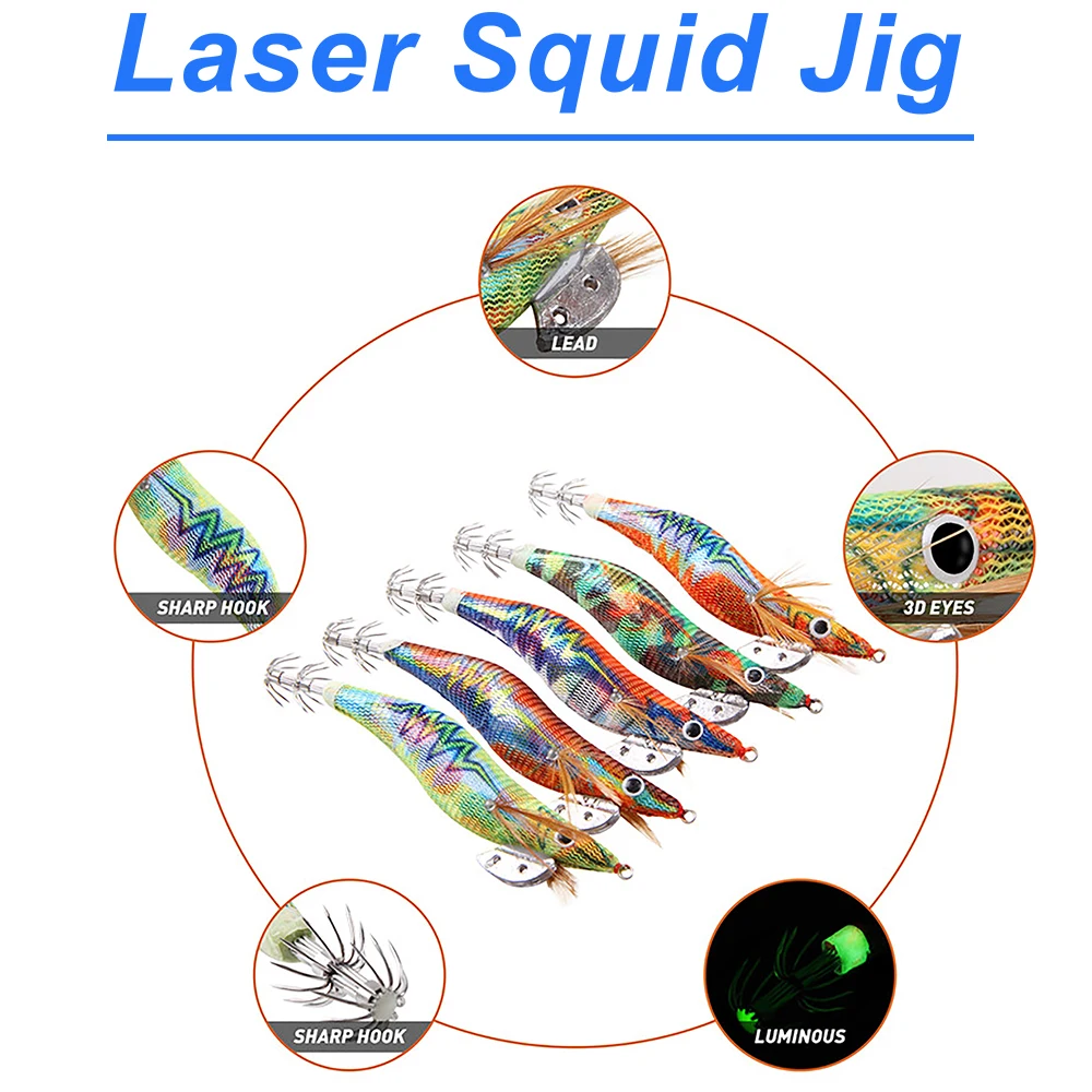 ---- Anzuelos de calamar reflectantes UV, señuelo de calamar de cuerpo completo, el cebo de calamar láser cumple con sus diferentes requisitos.