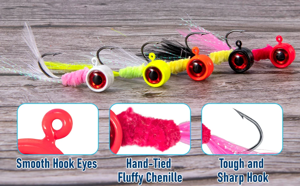 Ampliamente aplicable:Estos son señuelos de trucha completamente probados, señuelos de crappie y señuelos de panfish. Tienen un efecto particularmente significativo en la pesca de truchas, peces, percas y peces luna. También son eficaces para lubina, lucioperca, salmón, trucha arco iris, rayas, etc.