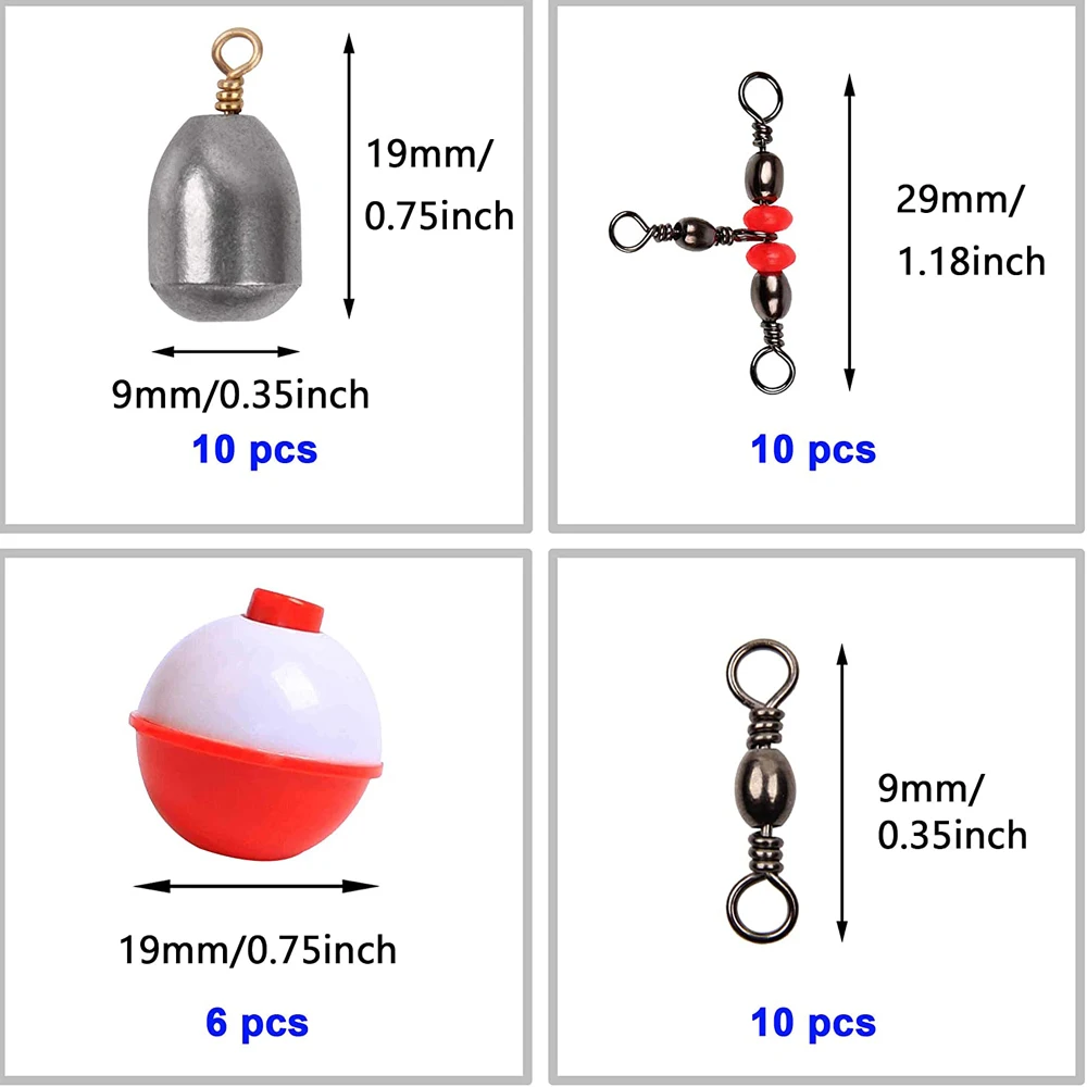 Común/Popular-los anzuelos y eslabones de pesca son más comunes y los estilos de varios tamaños para la pesca, y los flotadores son un gran indicador de mordida, especialmente cuando se enseña a los principiantes y a los niños a pescar.