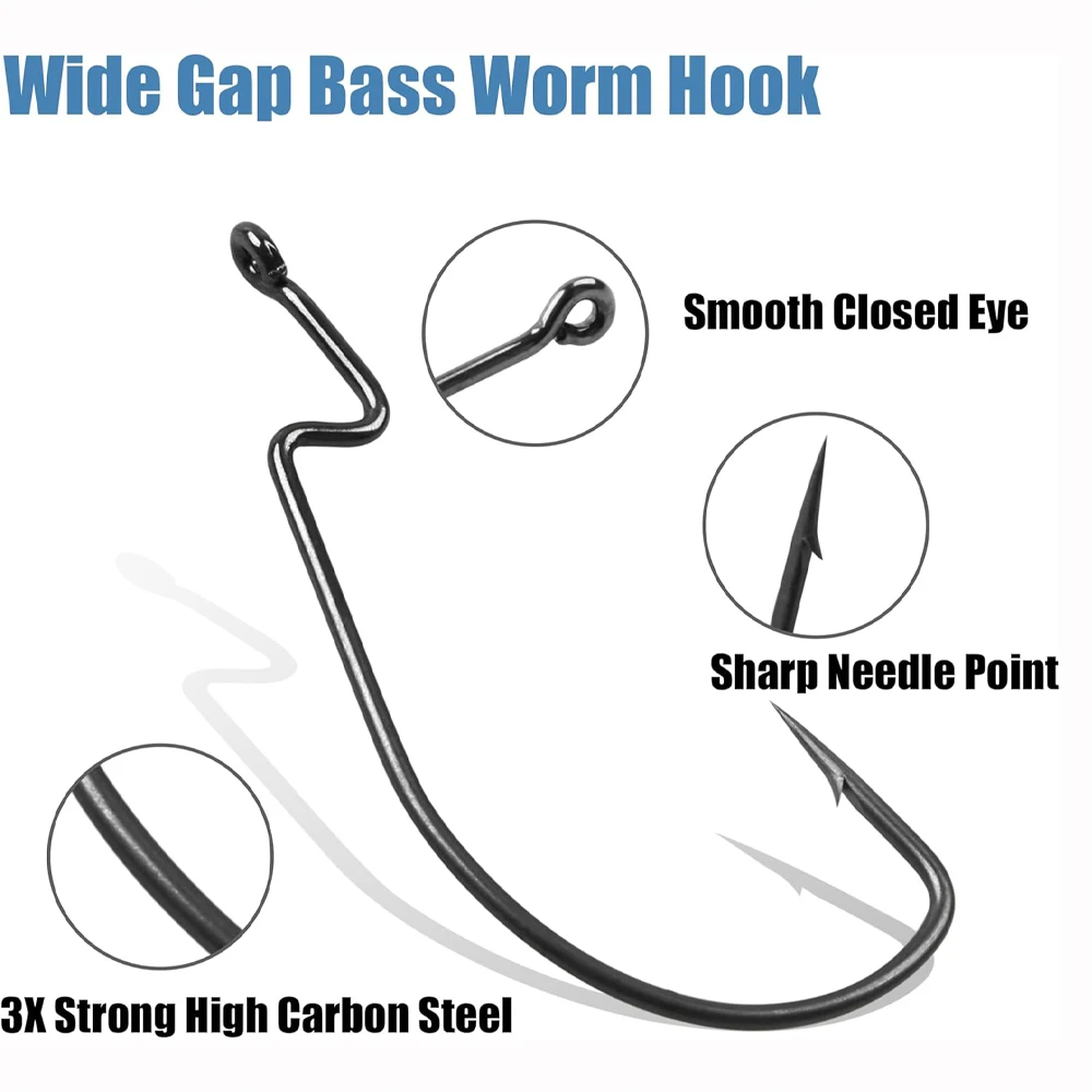 3. Este anzuelo de lubina de amplio espacio se puede utilizar no solo para la pesca en agua dulce, sino también para la pesca en agua de mar. Mientras tanto, es adecuado para su uso en varios cebos de plástico, como Carolina Rig, Texas Rig, Craws Beaver Baits, etc.