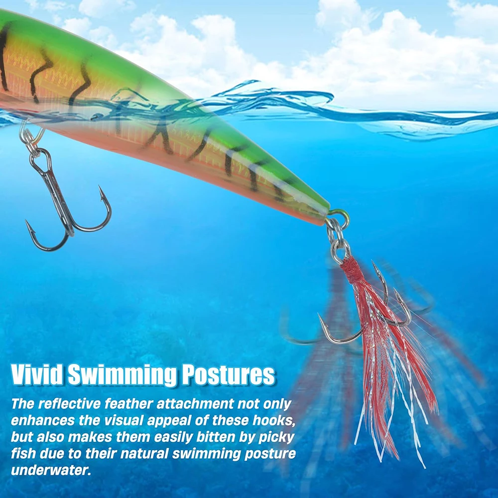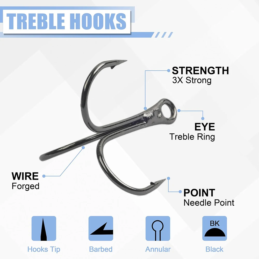 3. El anzuelo triple negro es un excelente anzuelo de repuesto para sus señuelos de pesca, cucharas, crankbaits o spinners, adecuado para capturar peces de agua dulce o salada como lubina, trucha, lucio, arenque, muskie y accesorios de aparejos de pesca con señuelos de salmón.