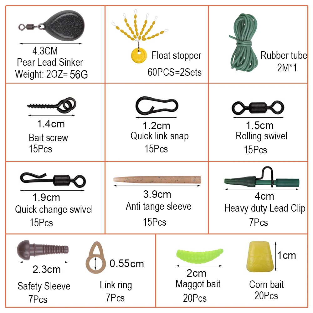 1.El aparejo terminal de pesca de carpa de 223 piezas es un excelente aparejo de carpa integral en general.Incluye muchas giratorias enrollables de color negro mate, tornillos para cebo, clips de cambio rápido, aguja de cebo, peso de carpa, cuentas de tapón flotante, ganchos de carpa preatados, callos emergentes, topes de boilie... accesorios para aparejos de carpa.