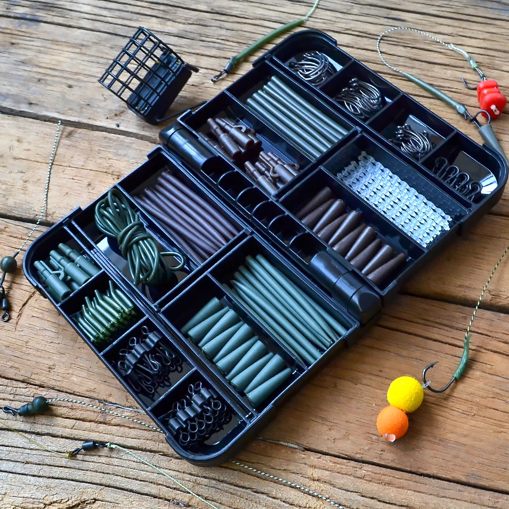 Carp Fishing Tackle Kit With Box Fishing Swivels And Snaps Quick Change Swivels Rig Safety Lead Clips Rubber Anti Tangle Sleeve XP-400