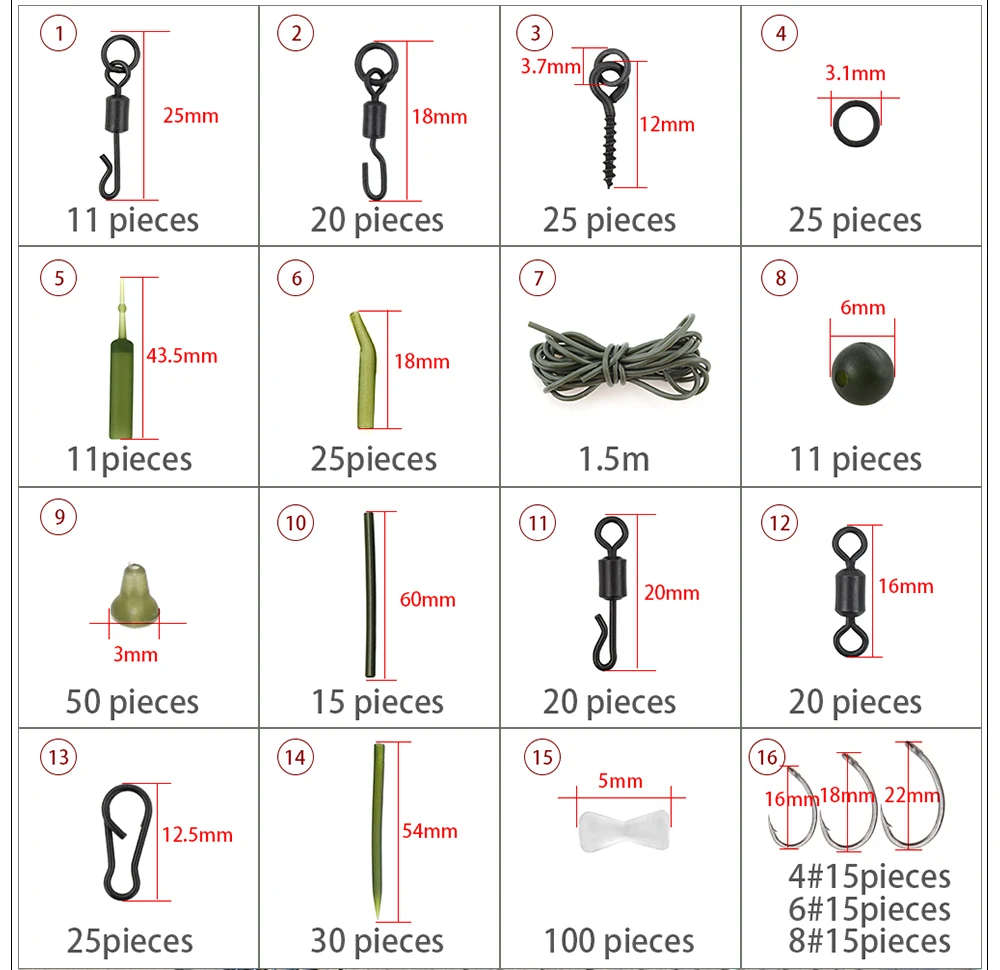 16.15pcs 4# Fishing Hook、15pcs 6# Fishing Hook、15pcs 8# Fishing Hook