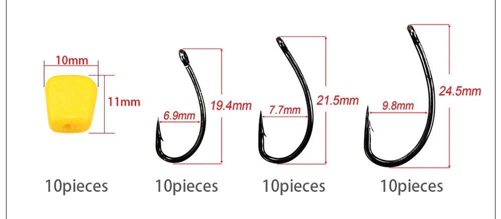 18.10pcs 4# Fishing Hook、10pcs 6# Fishing Hook、10pcs 8# Fishing Hook