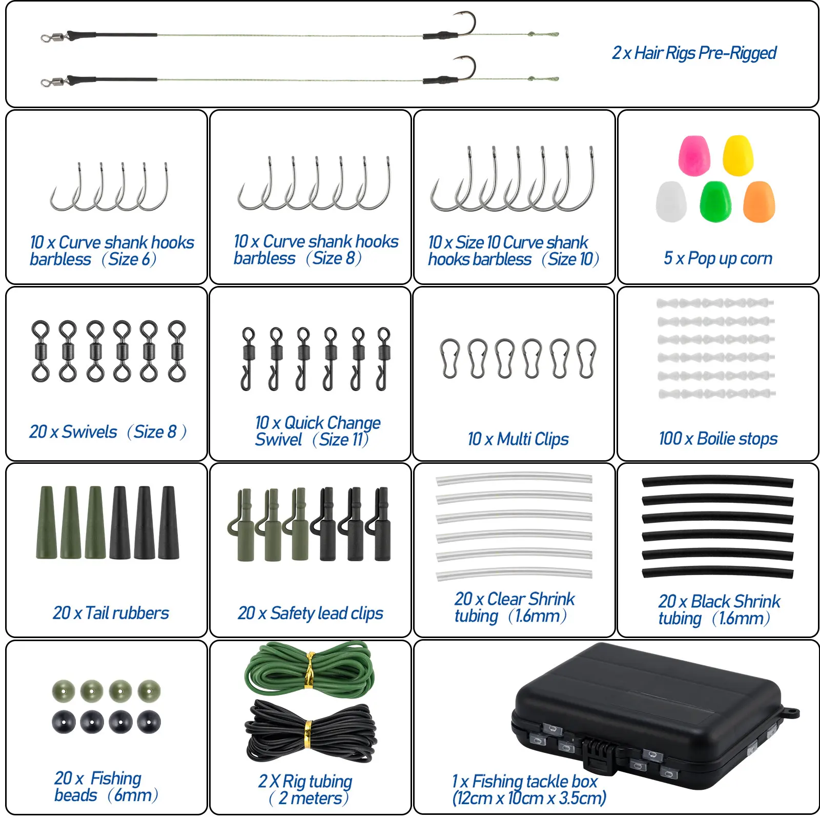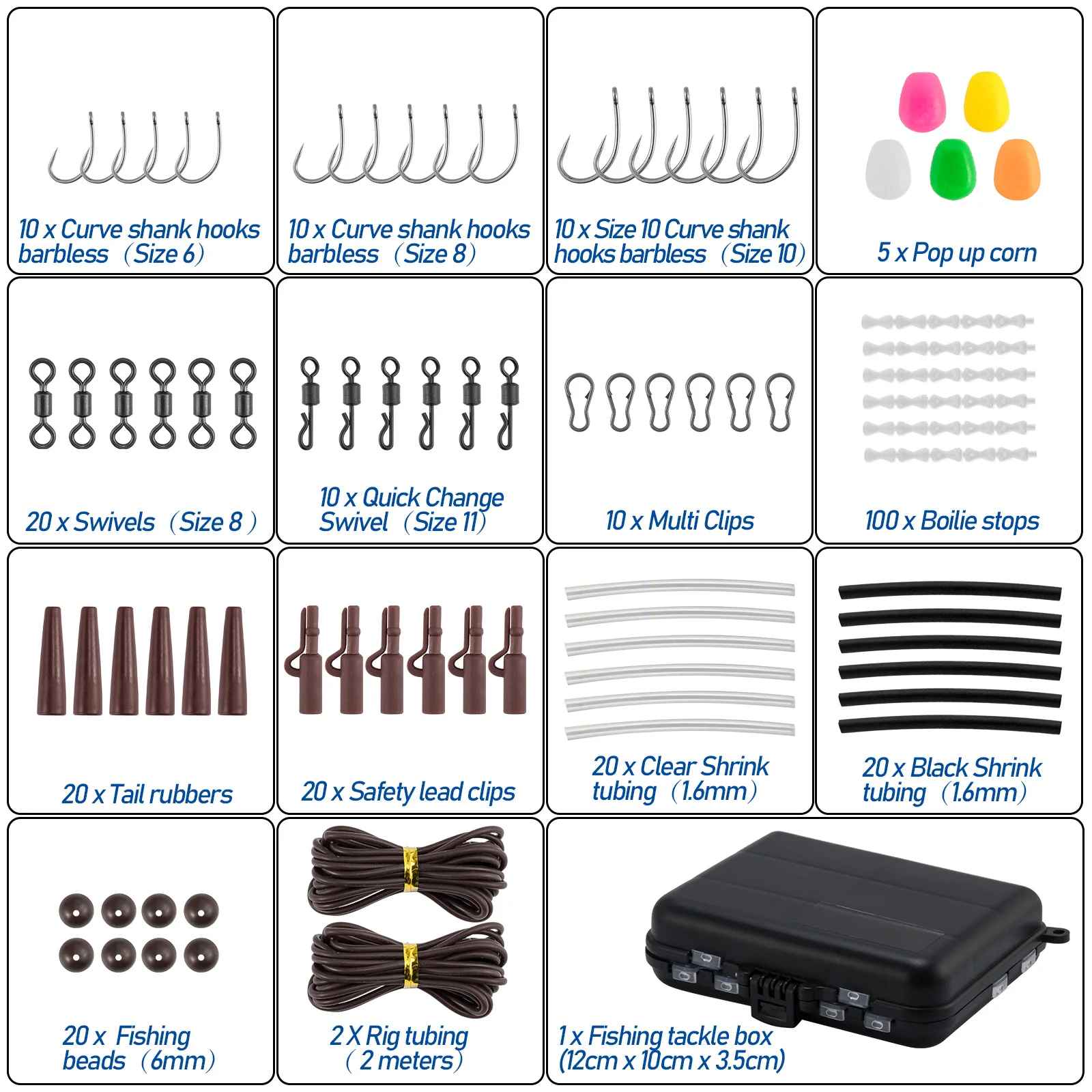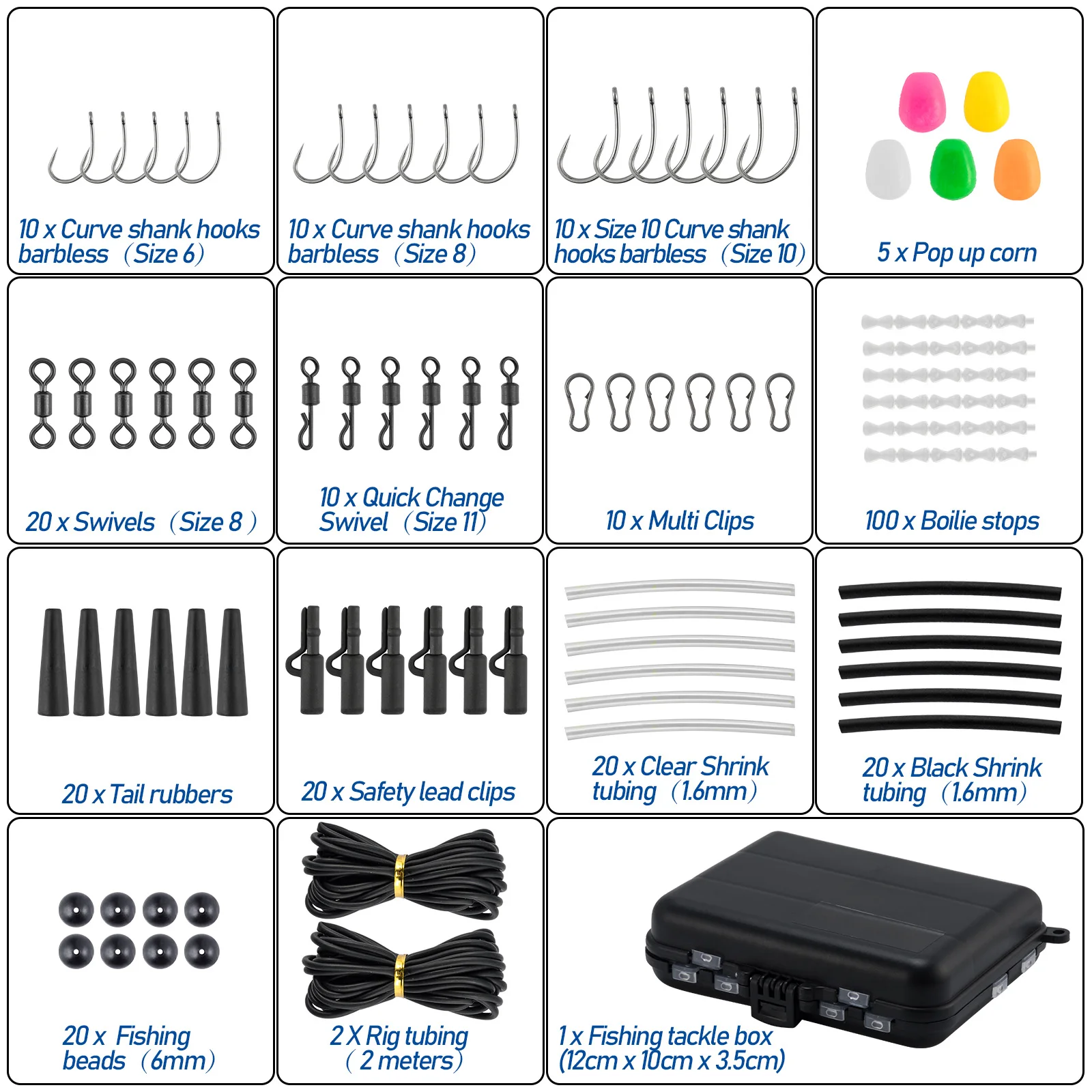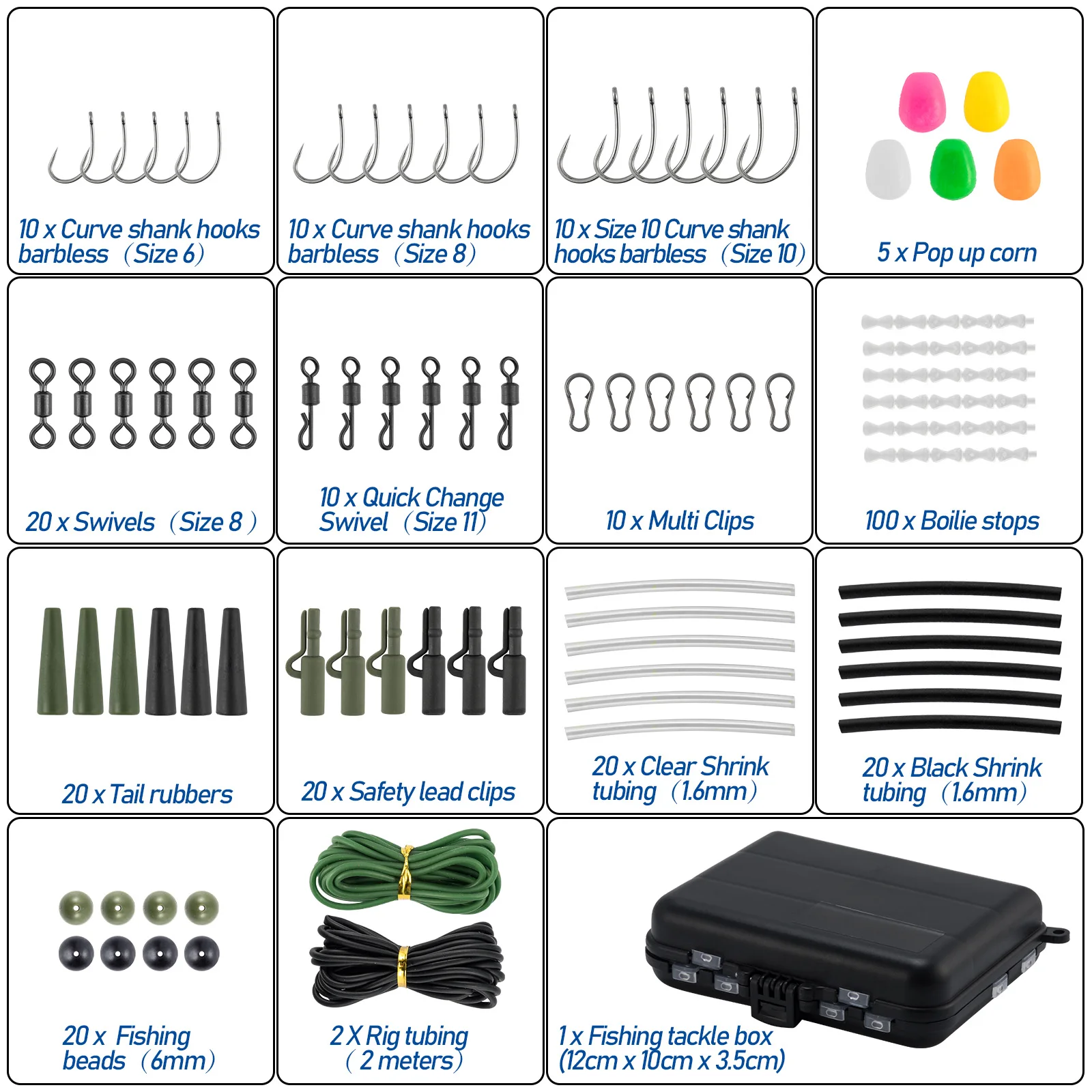 Un juego de caja de aparejos de terminal de pesca de carpa de alta calidad. Incluye varios tipos de aparejos para la pesca de carpa, ahorra problemas para su viaje de pesca.Cantidad:278, con caja280, con caja312, con caja