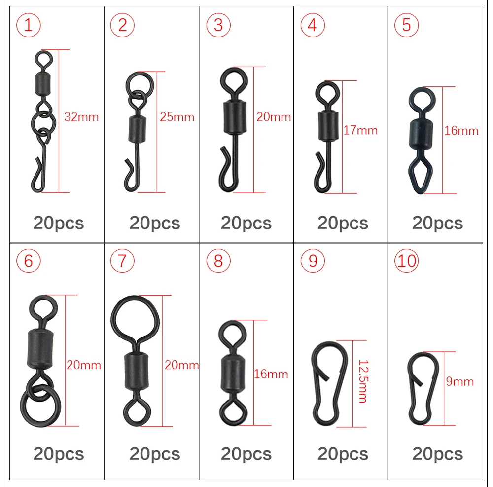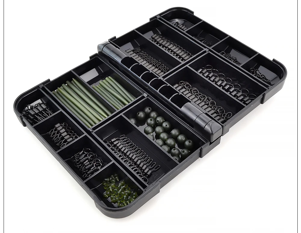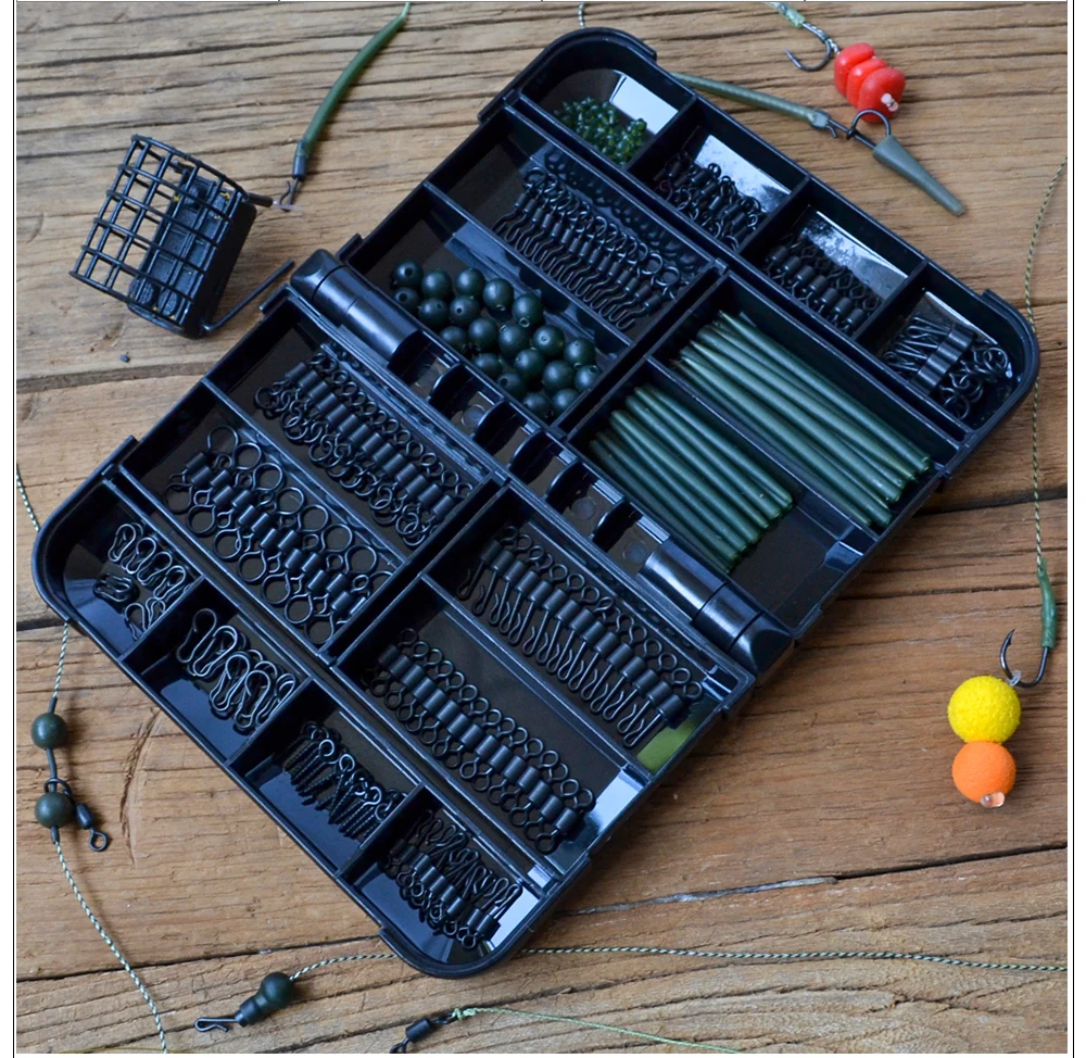 Kit de aparejos de pesca de carpa de 280, en caja, Cambio rápido de pesca, giratorios y mangas antienredos, cuentas de parada, aparejos de helicóptero, XP-311