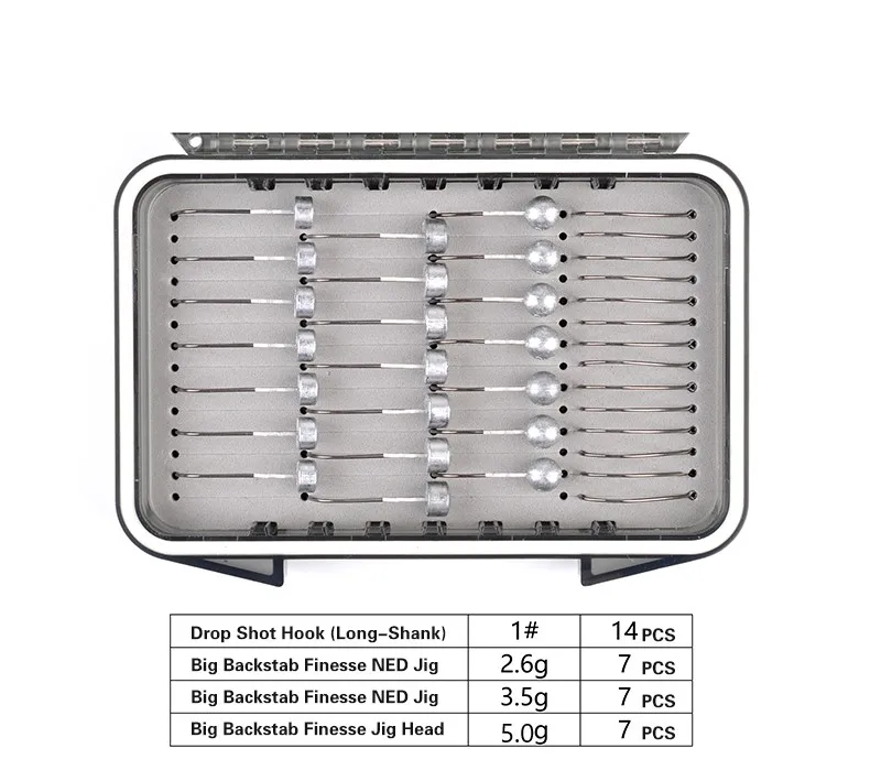 CAST & CATCH-Kit de aparejos de pesca, anzuelo de tiro de gota, gran puñalada, Finesse NED, anzuelos de plantilla y cabeza de plantilla, accesorios/solo caja, 35 piezas