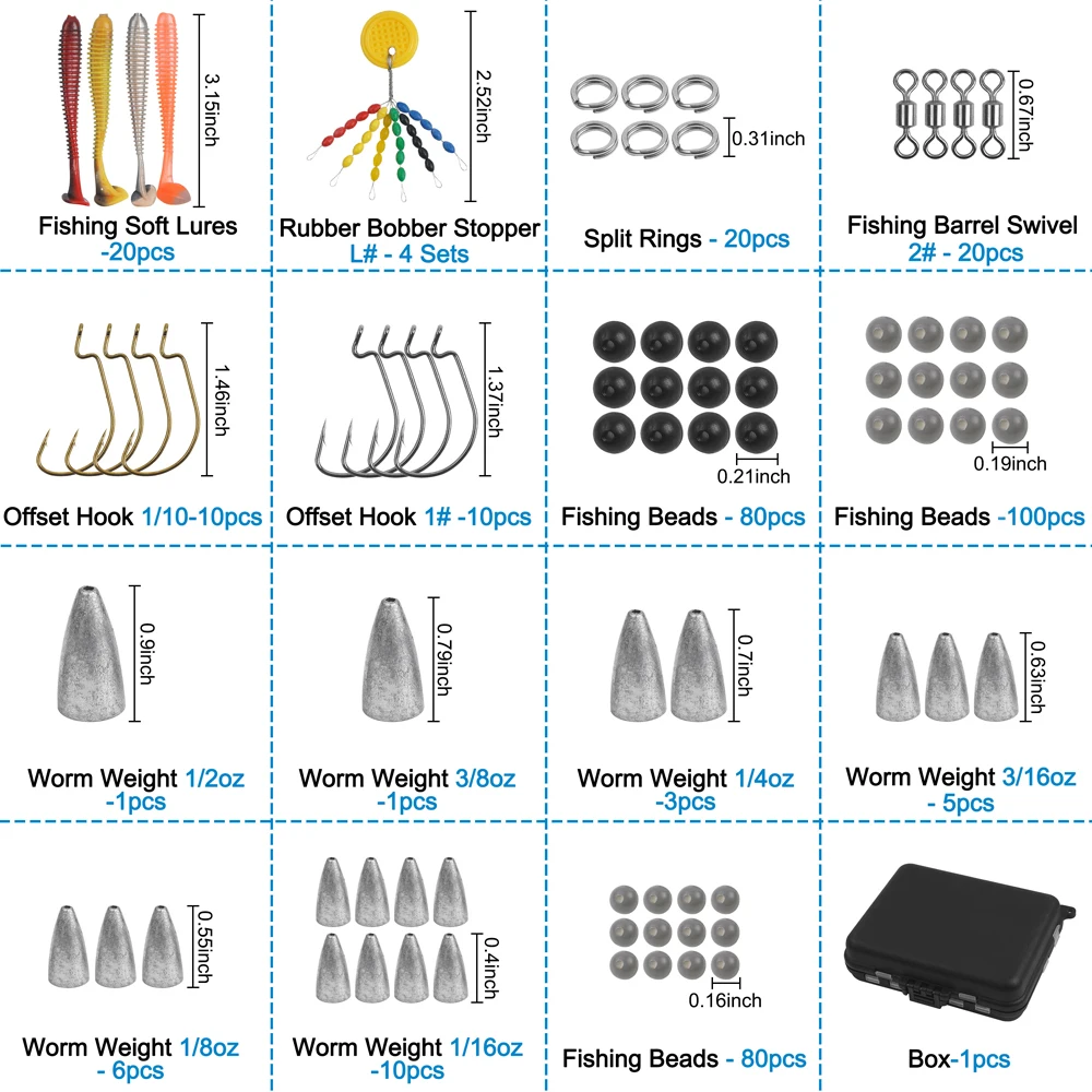2. Incluye anzuelos de pesca, plomos, eslabones giratorios, abalorios, anillos, etc., 370, en total.
