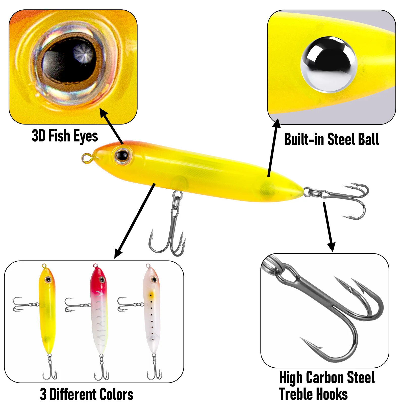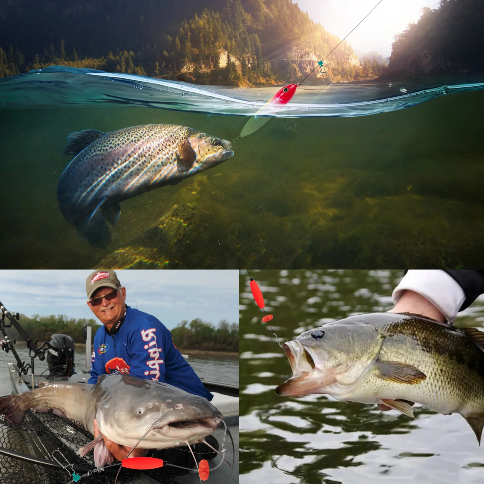 Señuelo flotante de línea de traqueteo de bagre: adoptando ojos 3D realistas, anzuelos triples afilados de acero de alto carbono y esquemas de pintura de primera calidad, estos señuelos de bagre le dan una ventaja sobre la competencia. La bola de acero incorporada puede producir un sonido irresistible para los peces objetivo.