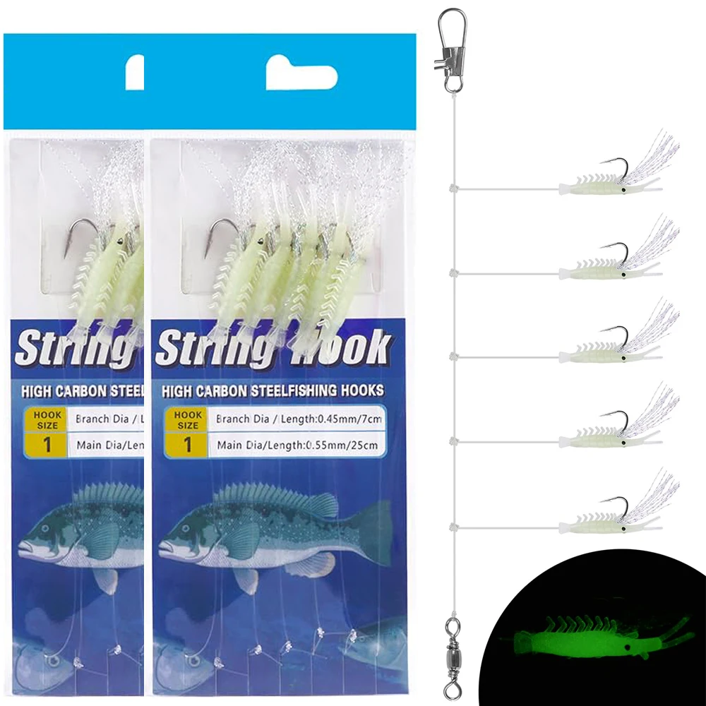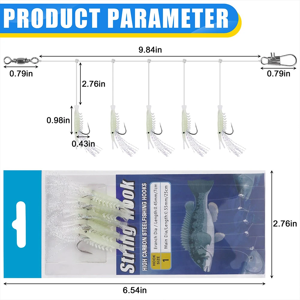 HAGA EL BRILLAR FUERTE: coloque los aparejos de cebo para camarones bajo el sol o la luz, funcionarán de manera más efectiva por la noche o en lugares oscuros.Mostrando su cuerpo luminoso para centrarse de otros peces, ayude a los pescadores a atraer una captura más grande.