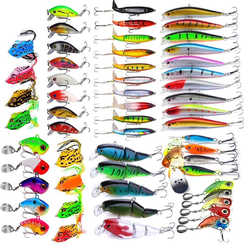 Kit de aparejos de señuelo de pesca, cebo duro Artificial giratorio flotante, pececillo de pesca Crankbait Wobblers Spinner, anzuelos que se hunden