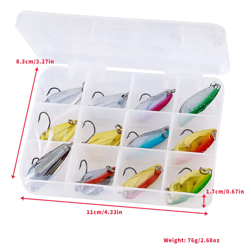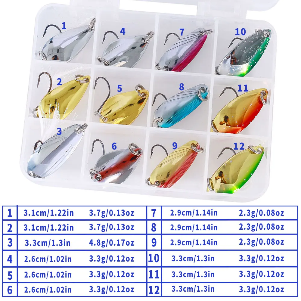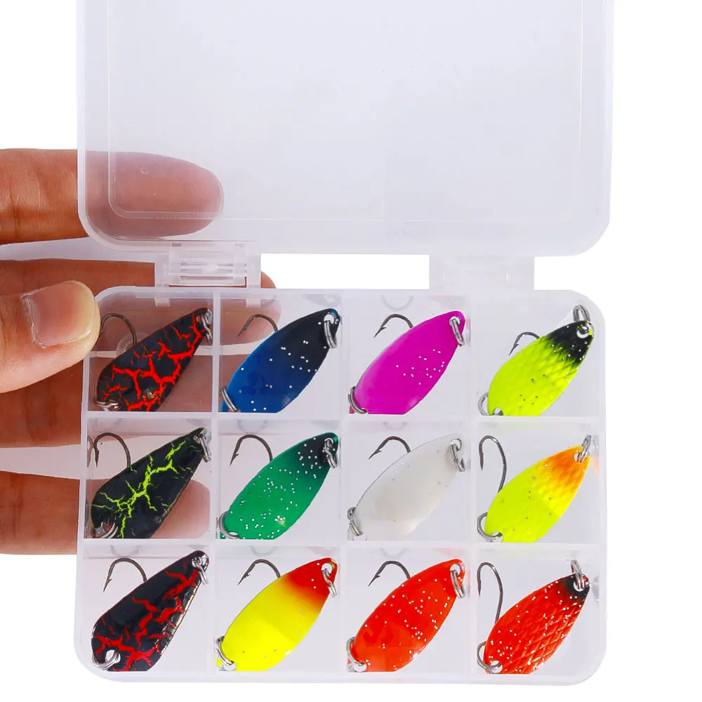 Kit de caja de 12 Uds., señuelo de Pesca con cuchara de Metal, Wobbler, aparejos de Jigging de fundición, accesorios de Pesca Chub, cebo giratorio de un solo anzuelo, trucha y lubina