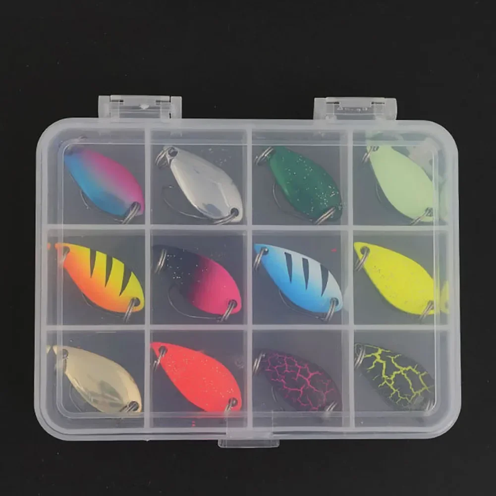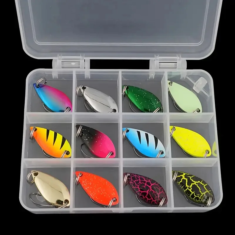Kit de caja de 12 Uds., señuelo de Pesca con cuchara de Metal, Wobbler, aparejos de Jigging de fundición, accesorios de Pesca Chub, cebo giratorio de un solo anzuelo, trucha y lubina