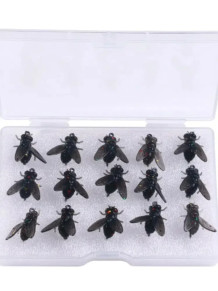KIT de caja de 15 Uds., señuelo de pesca, cebo suave, simulación de moscas, insectos, cebos, captura de peces pequeños, señuelos artificiales, Lucio, carpa, lubina