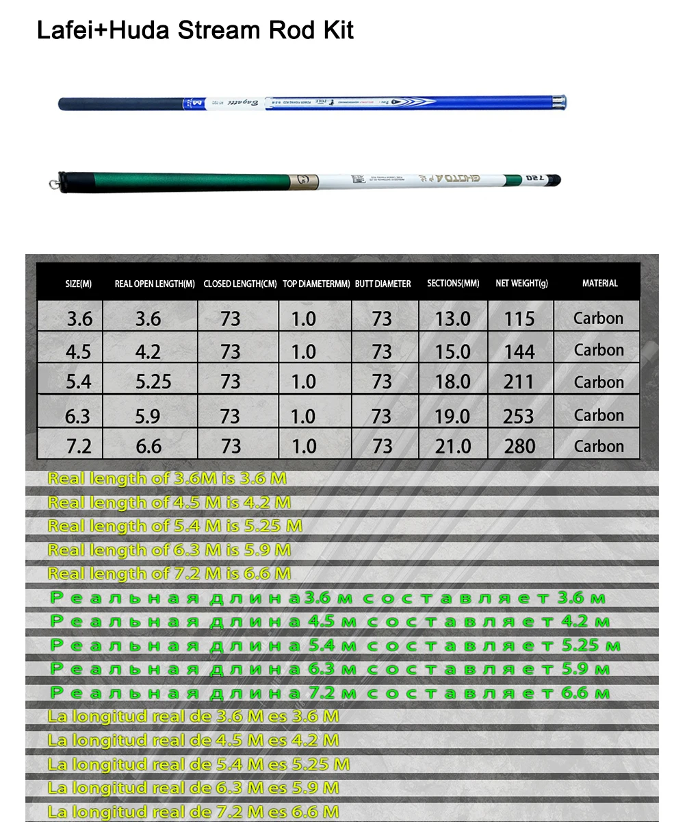 Kit de caña de pescar telescópica de fibra de carbono de agua dulce ultraligera de 2 piezas, alimentador de carpa, cañas de pescar 3,6 portátiles/4,5/5,4/6,3/7,2 M
