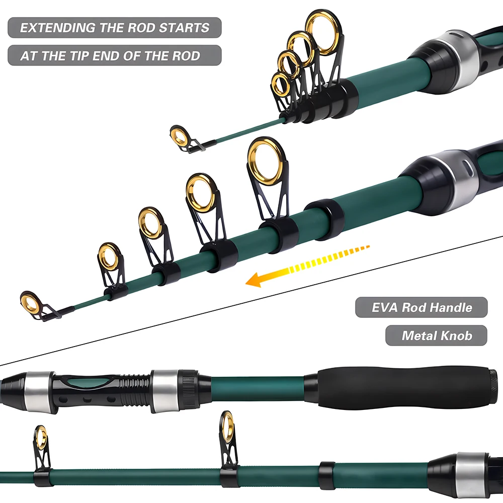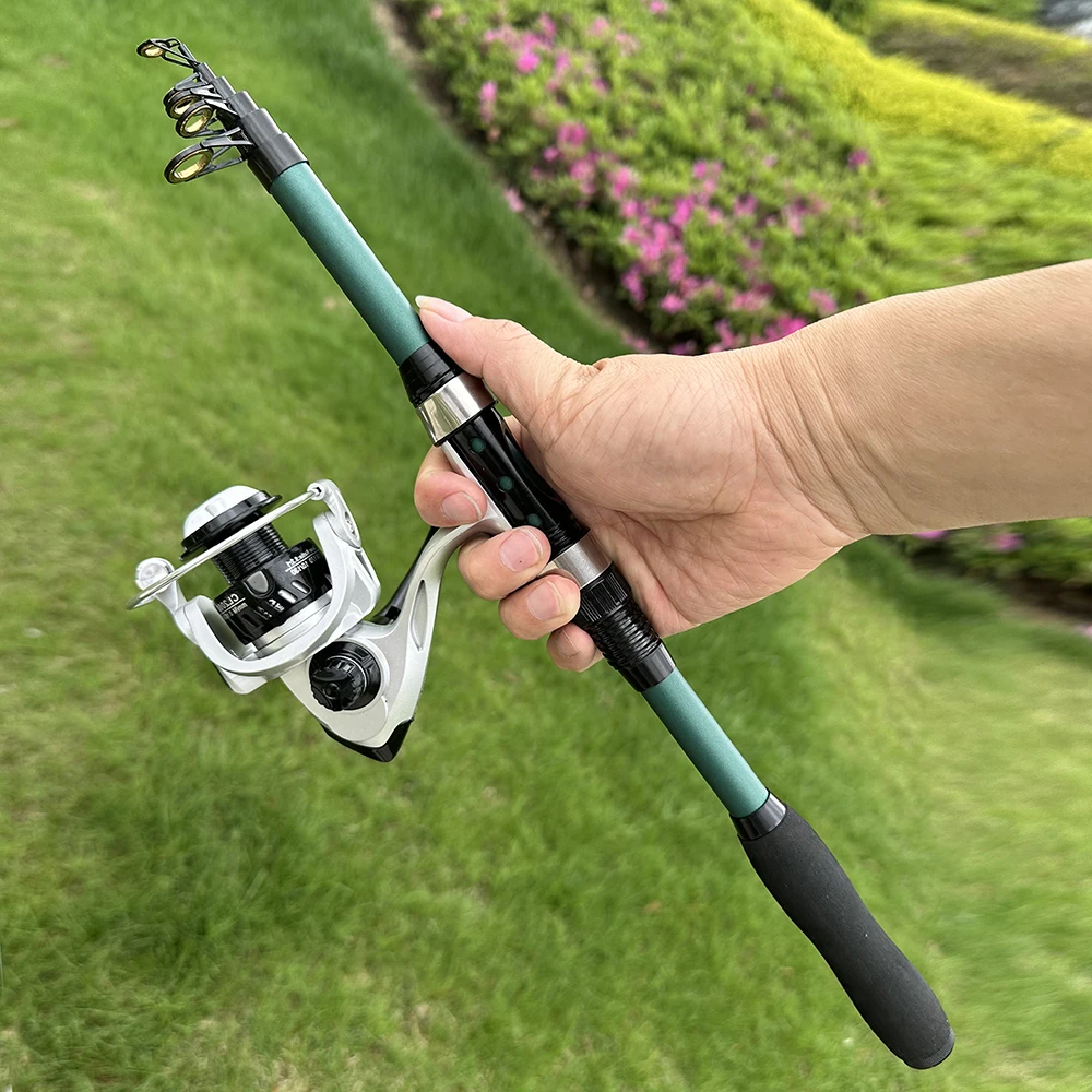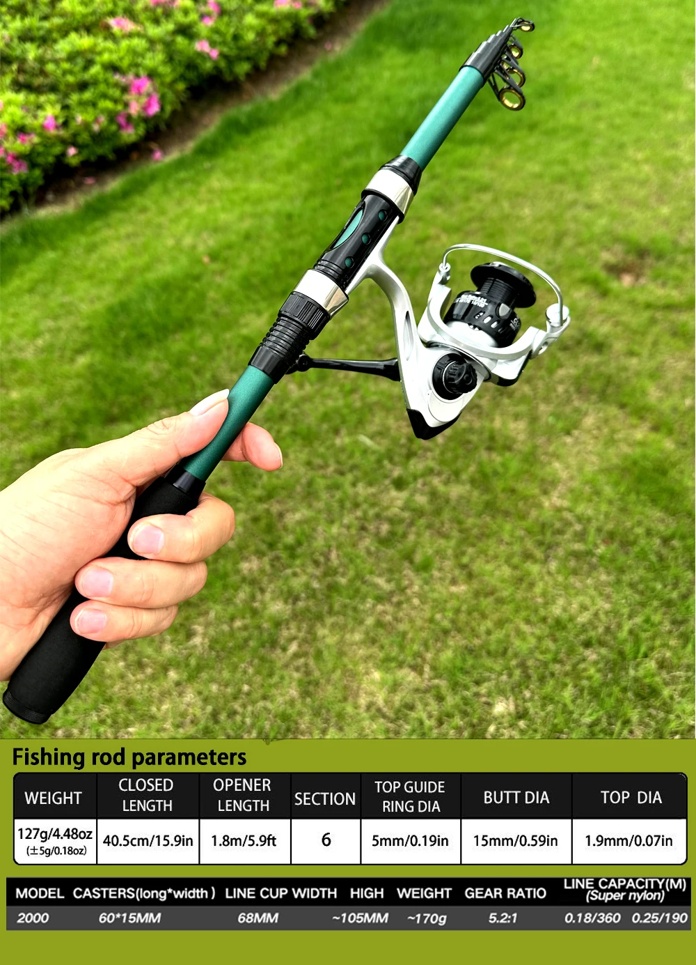 Kit de carretes giratorios para pesca, Set de cañas de pescar telescópicas de 1,8 m, peso del señuelo 5-20g, relación de engranaje 5,2: 1, rueda para lubina, lago, mar
