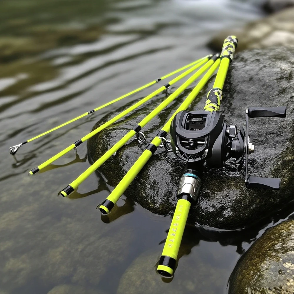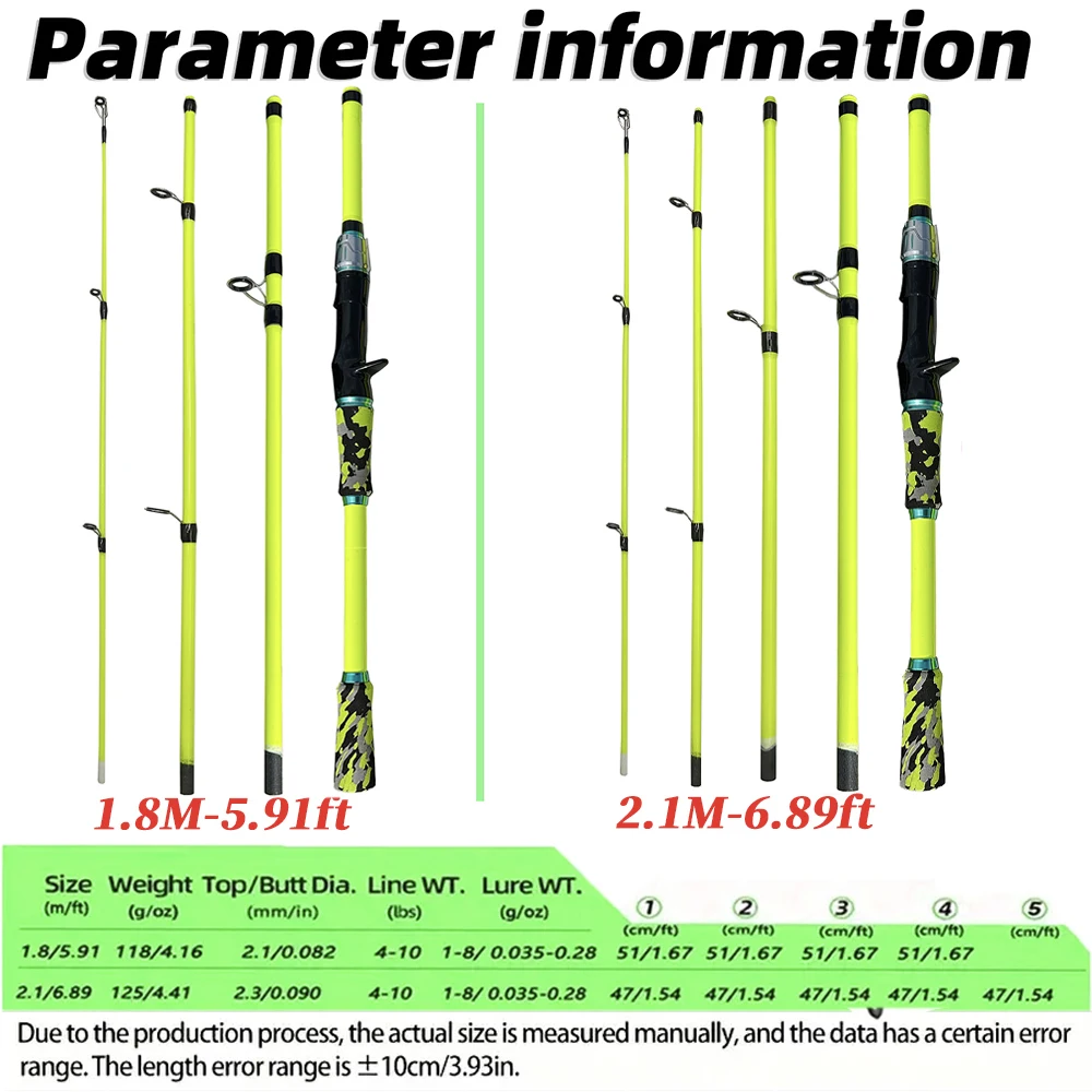 Combo de caña de pescar con señuelo de 4/5 secciones ML, caña de fundición de cebo de fibra de carbono de 1,8/2,1m y carrete de Baitcasting