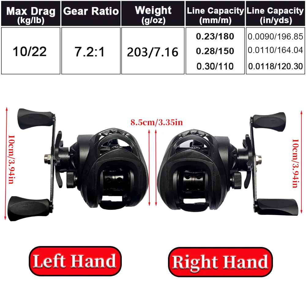 Se pueden ajustar 7,12 velocidades de fuerza magnética, 12 selecciones según el peso del señuelo.