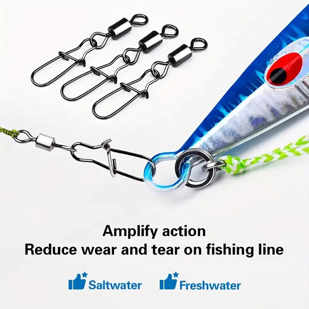 Kit de conector de gancho de línea de pesca, rodamiento de bolas rodantes, giratorios a presión para aparejos, accesorios de señuelo, relación de enganche mejorada, 50/95 unids/lote por caja