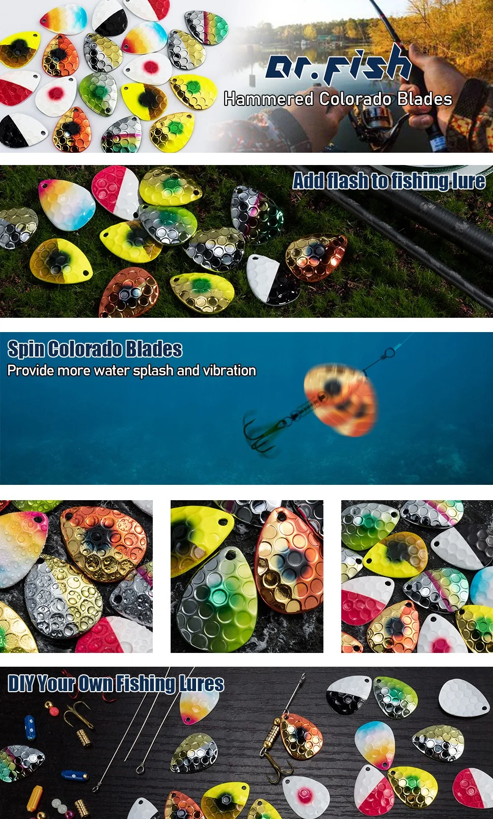 Colores y patrones especialmente seleccionados para una máxima productividad. El diseño martillado desviará la luz en múltiples direcciones, permitiendo que su señuelo sea visto desde mucha más distancia