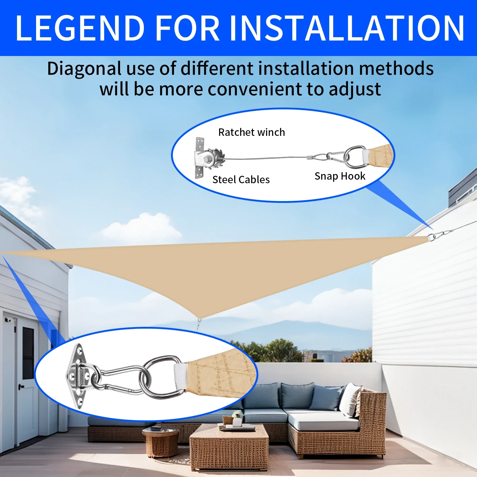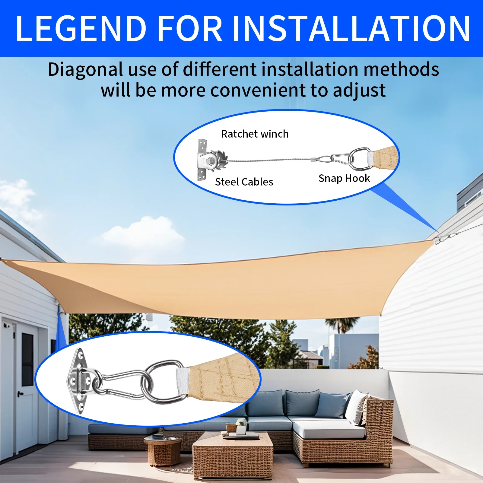 🛠️【Fácil de instalar】Este kit de hardware incluye todo el hardware necesario para montar el kit de vela de sombra rectangular/cuadrado/triangular en cualquier estructura, árbol o poste.