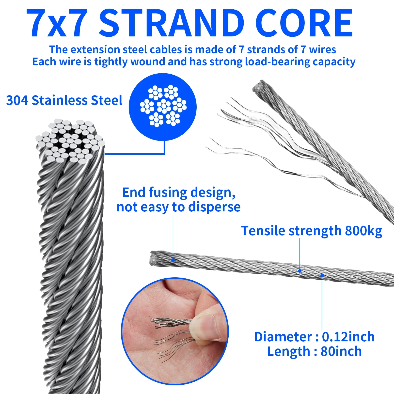 🛠️MATERIAL DURADERO: El cable está hecho de acero inoxidable 304 duradero con una estructura central de 7 * 7 hilos recubierta de PVC, el cable metálico recubierto de plástico es lo suficientemente suave como para estar en pleno contacto con el mundo exterior, impermeable, resistente al óxido y a la corrosión. la superficie del cable es lisa y sin rebabas, de calidad Seiko, resistente y duradera.