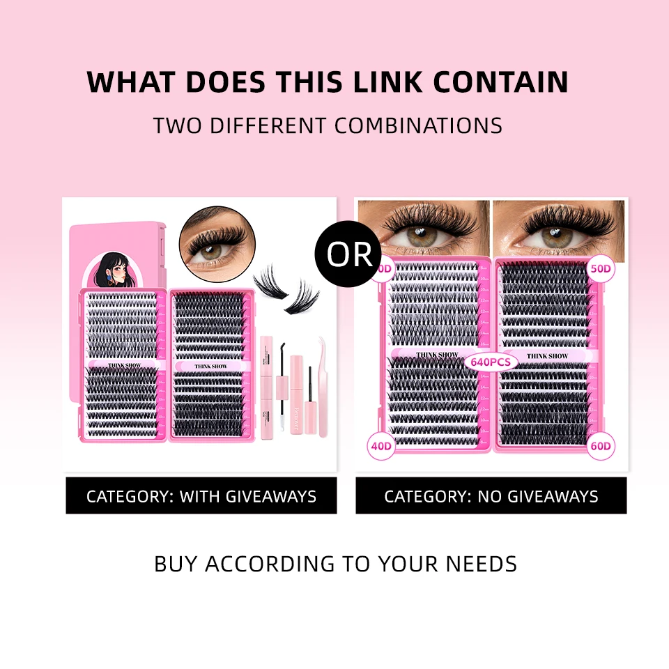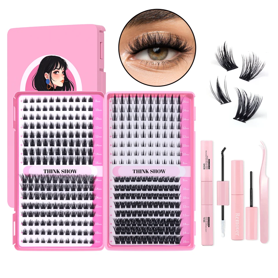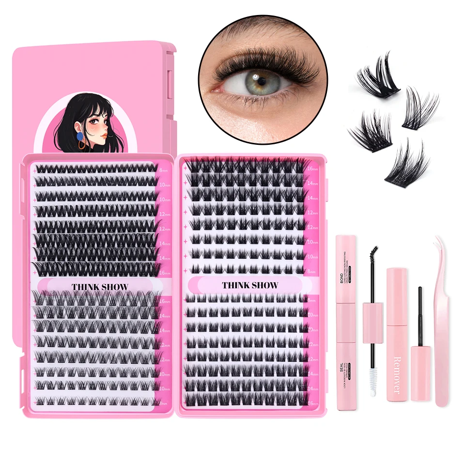 Kit de extensión de pestañas 640 Uds 304050D grupos de pestañas D Curl 8-16mm Kit de pestañas individuales con unión y sello, pinzas y cepillo