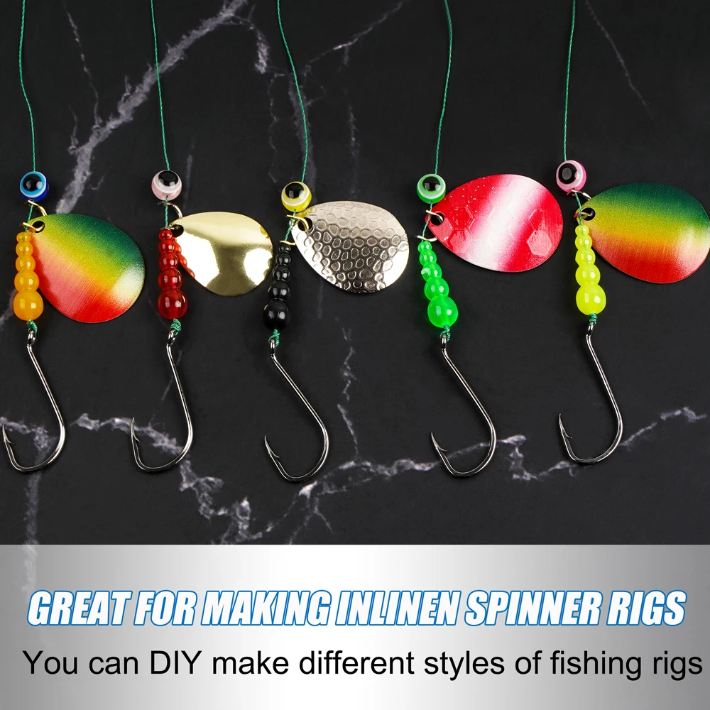 3.FÁCIL DE HACER: pase una cuchilla giratoria a través del eje de alambre, luego agregue una cuenta de pesca debajo de la cuchilla giratoria y luego coloque un peso apropiado.Agregue los anzuelos de pesca al final y luego envuelva el cable con unos alicates para que los accesorios se deslicen hacia abajo y podrá usarlo.