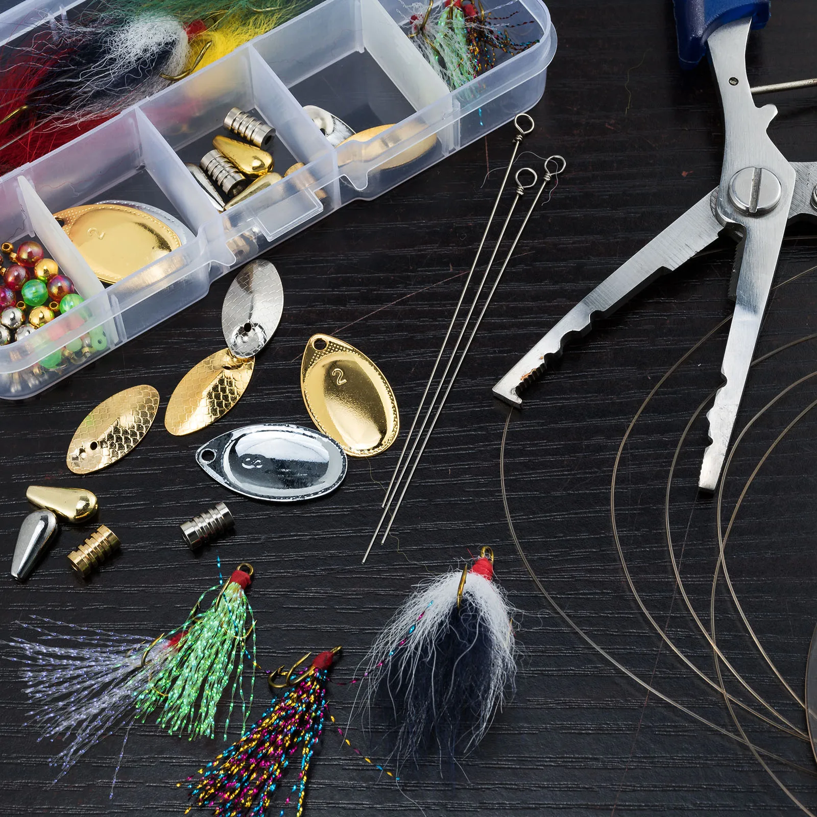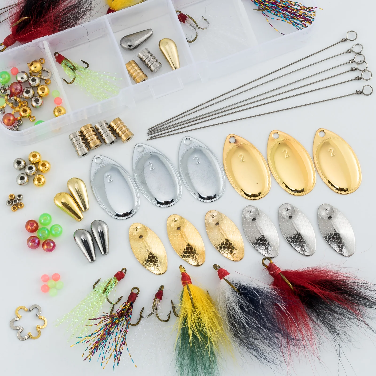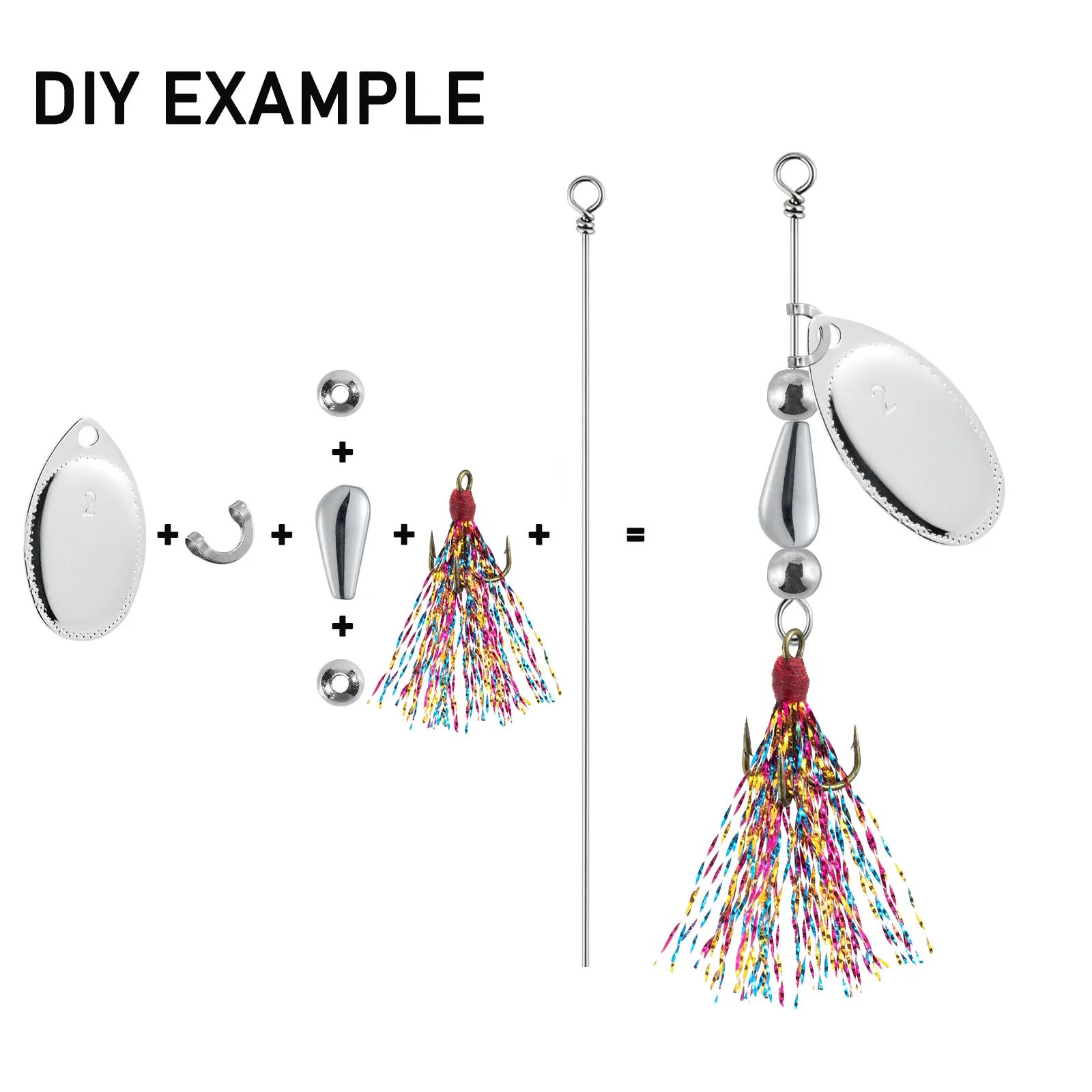 Un kit de cebo giratorio en línea DIY todo en uno:Puede hacer los cebos giratorios en línea según sus propias necesidades. Los cebos giratorios en línea cuentan con un cuerpo en línea que se proyecta como una bala y ayuda a que el Spinner permanezca en la zona de ataque durante un período de tiempo más largo y la construcción en línea que genera un flash brillante y una vibración que llama la atención.