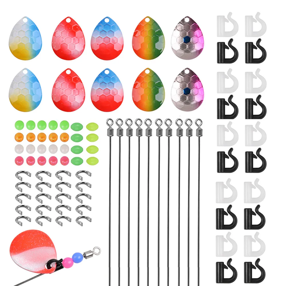 110Pcs spinner lure making kit Easy Spin Fishing clevis steel wire spinnerbait willow blades for Walleye Bass Trout Lure Fishing