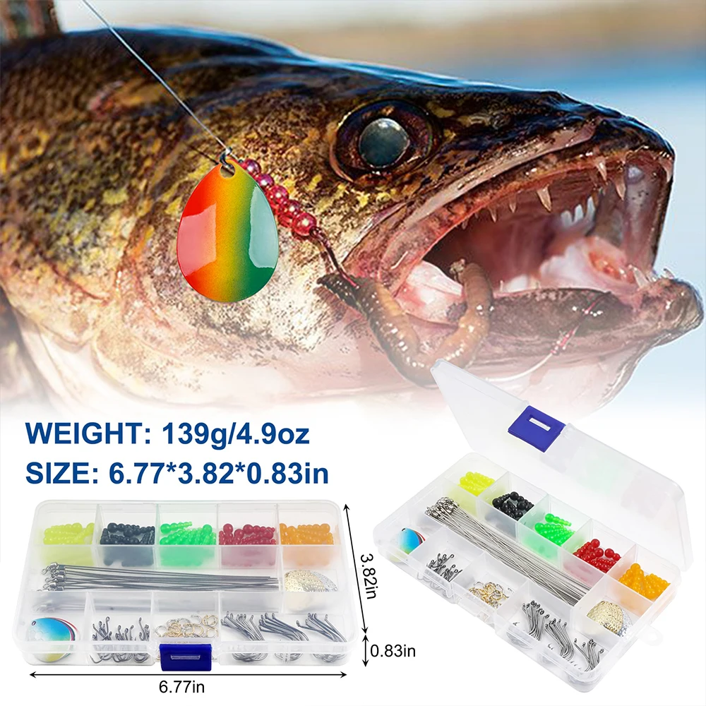 【Fácil de montar】El exquisito kit recoge todas las piezas que necesita para construir los señuelos como aparejos walleye, aparejos giratorios, giradores en línea, etc.Ideal para lubina, salmón, cabeza de acero, agua dulce y agua salada.