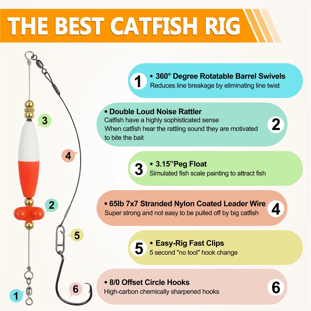 2. El bagre habita en lagos, estanques, ríos y arroyos, que se pueden encontrar de costa a costa y desde el sur de Canadá hasta el norte de México. Catfish Rig sería el mejor aparejo de bagre disponible para tipos específicos de bagre grande en todos los escenarios posibles.
