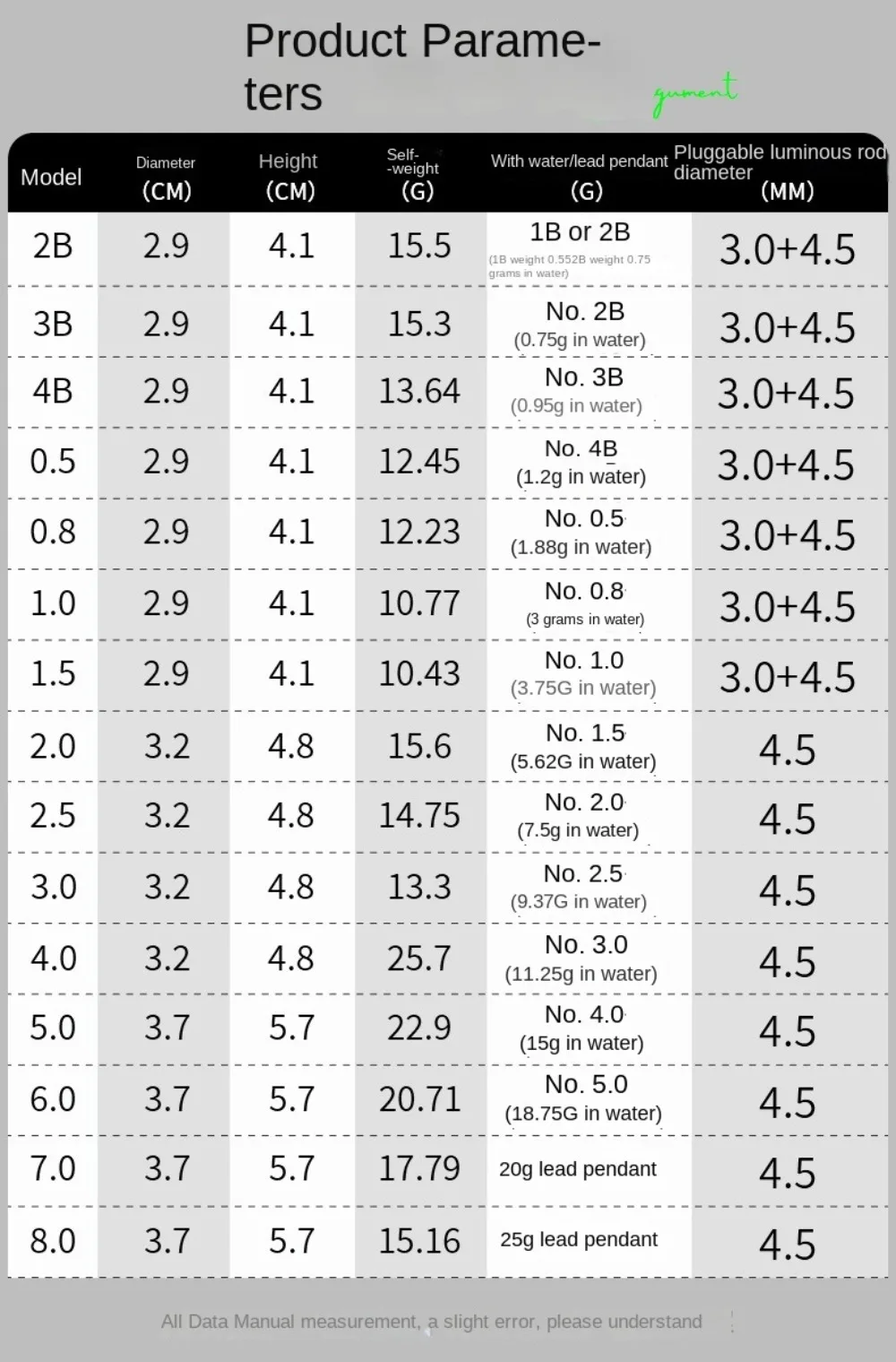 Model: 4B 0.5, 0.8,1.0,1.5,2.0,2.5, 3.0,4.0,5.0