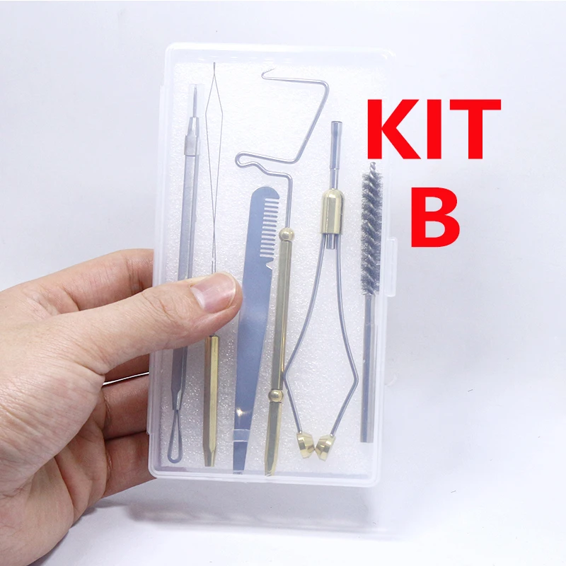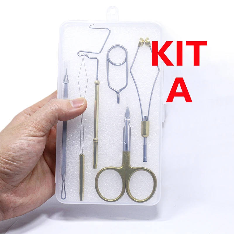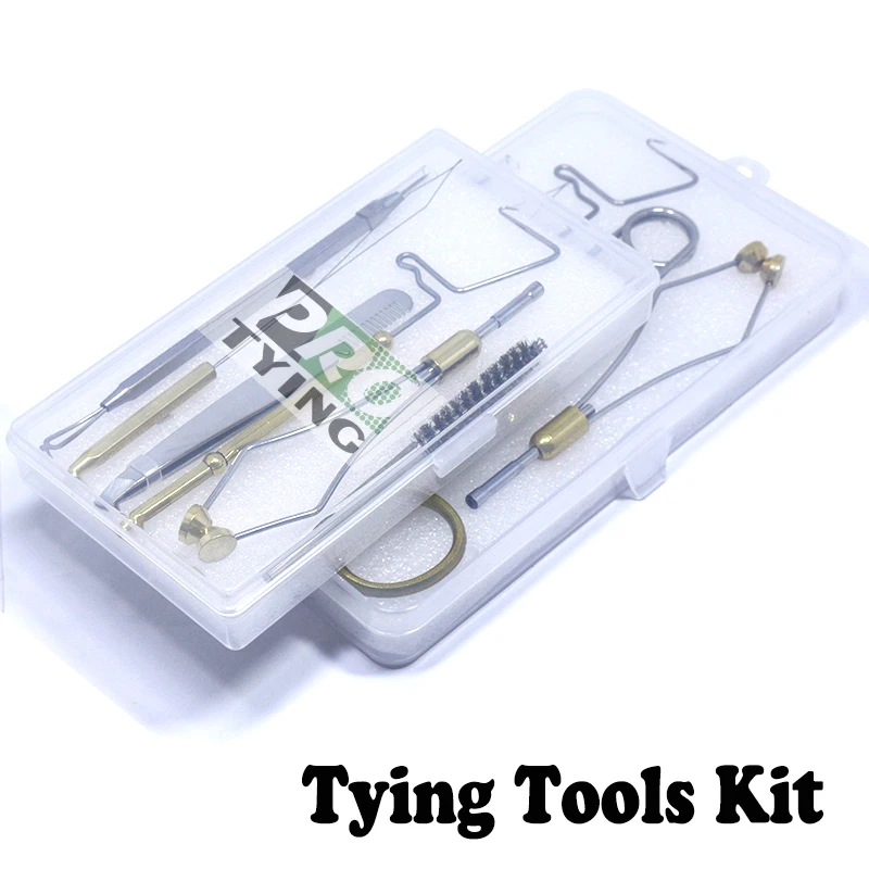 Este es un conjunto de herramientas de atado de moscas de uso común con caja de almacenamiento.
